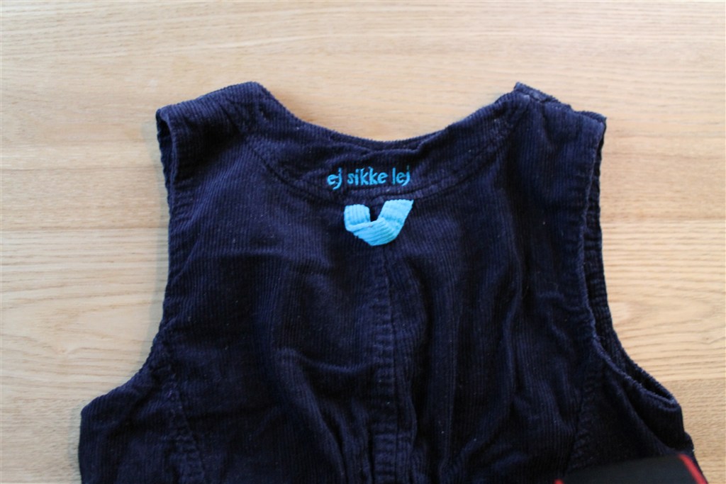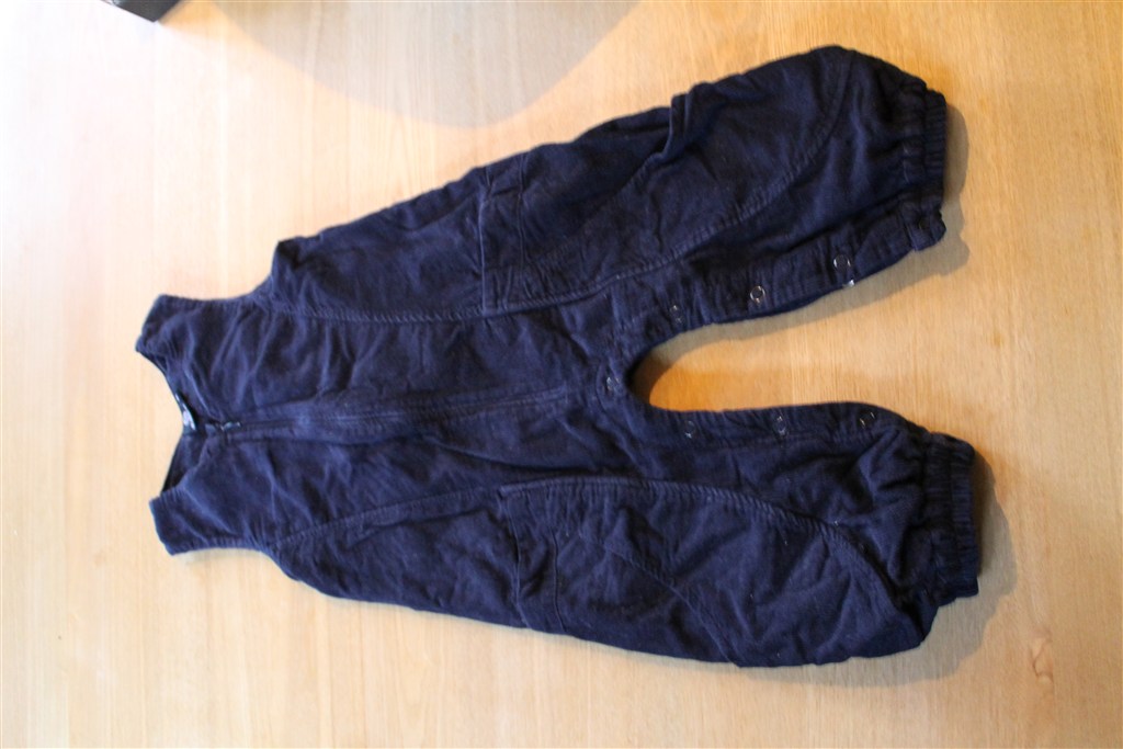 Ej sikke lej fløjlsbukser i mørkeblå. Lynlås ned foran. Turkise detaljer bagpå. str. 80