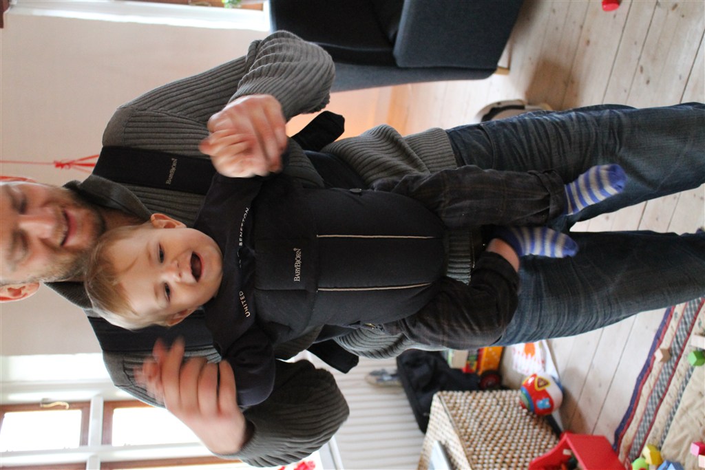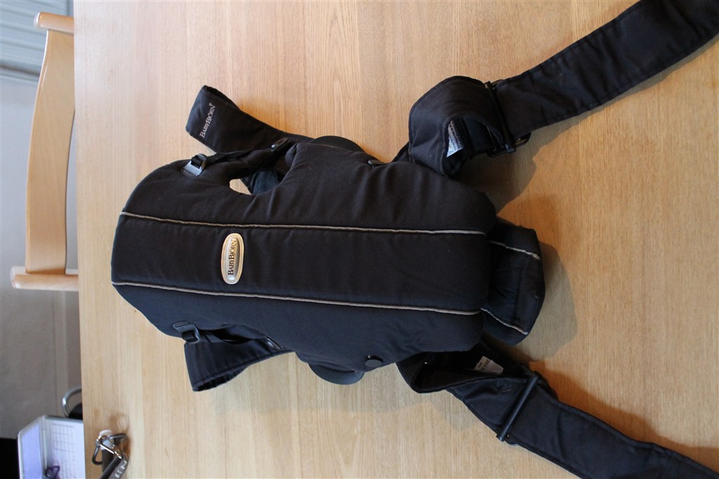 Baby Bjørn bæresele. Ensfarvet i mørkeblå. Næsten ikke brugt, der er ingen slid/pletter. Virker fra et helt lille barn til en stor basse (se Richard som demo fra i dag, 78 cm lang