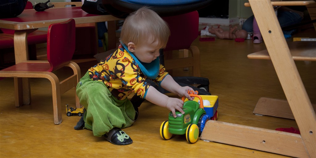 de er så søde derhenne, og han elsker at være der, de har masser af legetøj og der falder noget nyt i hænderne på ham hver dag, dog er han gladest for køretøjer og bolde.. alt hvad der kan trille rulle og dreje rundt. det har han været meget fasineret af altid..