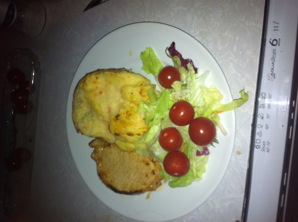 kan serveres med salat og koteletter .. det fik jeg og det smager godt.