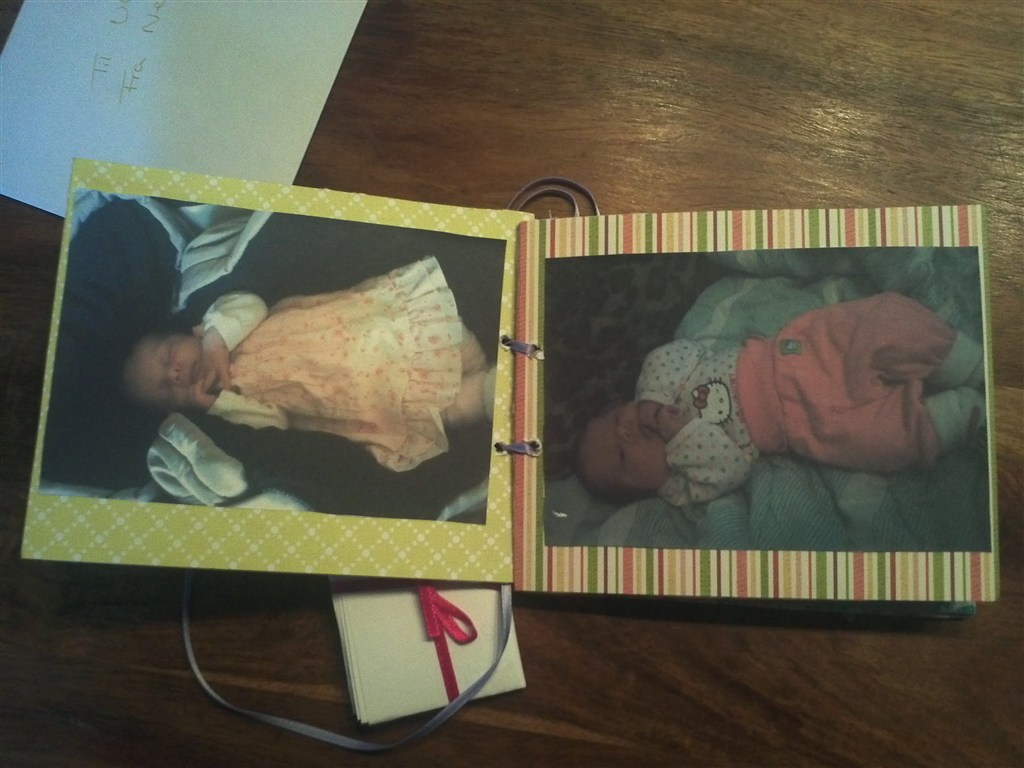 har lavet en mini scrapbook med vores lille prinsesse, inkl. et lille kærestebrev, hehe, til min kæreste i julegave. ( ekstra gave