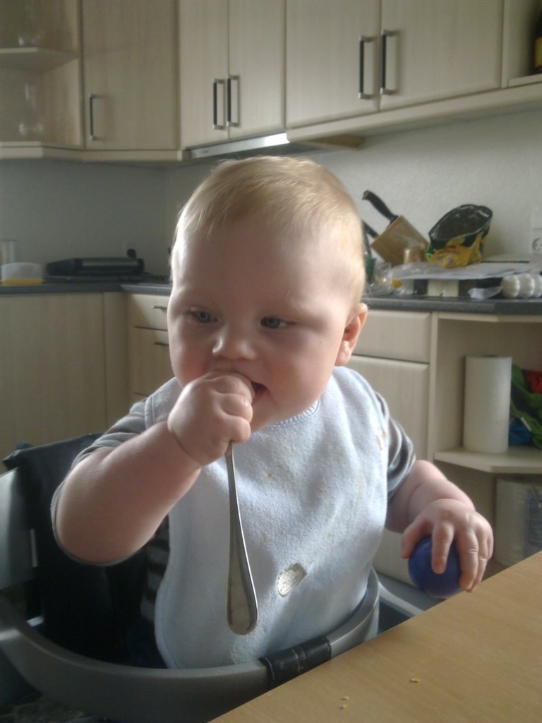 Baby er han ikke mere, han får kun 1 flaske mme til sengetid, ellers spiser han flot af grød og vores alm. mad. Altså vildt som tiden flyver afsted.