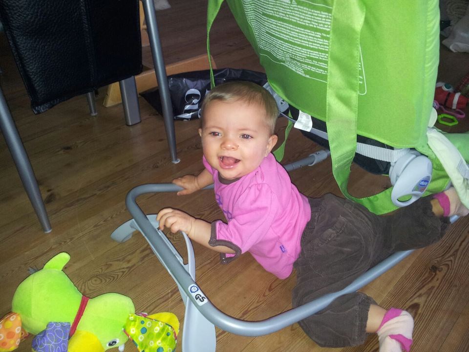 Hun kravler næsten, magler kun lige at komme helt op, men det er godt nok tæt på.