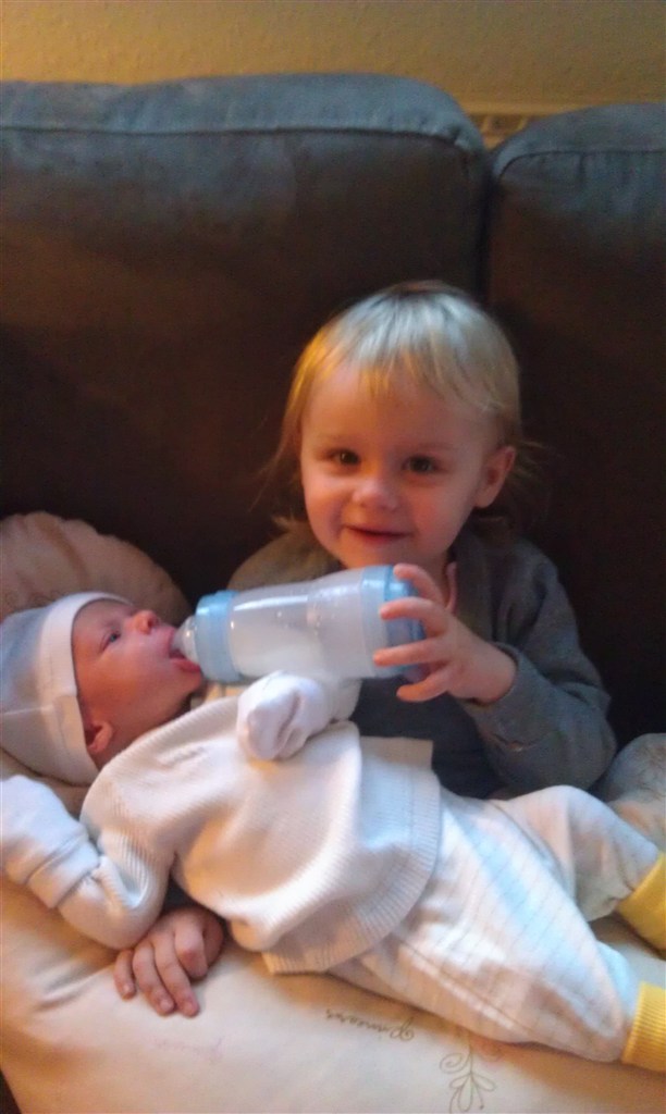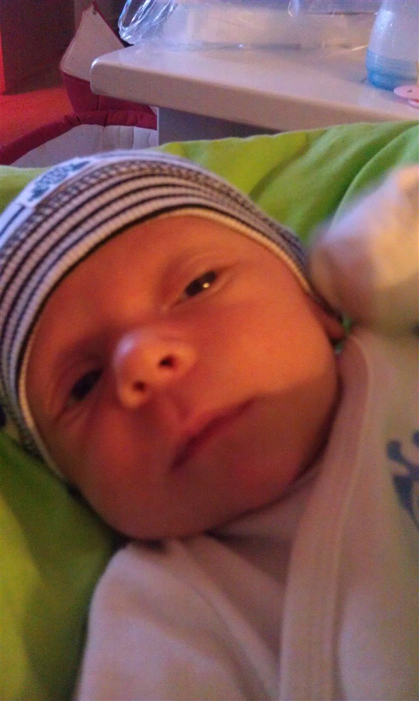 Han er dejlig Nem dreng mad hver 3 time ellers høre vi ikke noget fra ham. Han har haft lidt med maven men det er ved at være over.