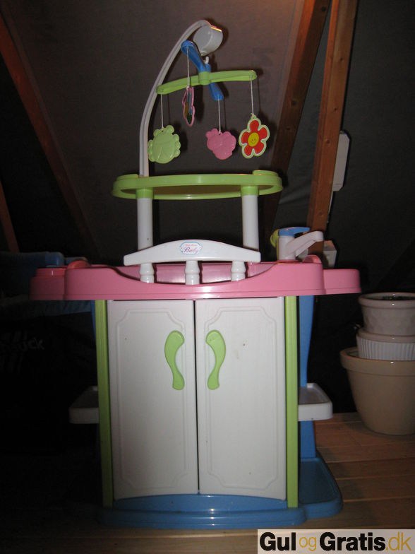 Vi har det lyserøde badekar med pusleplads ovenppå til ca. 300 kroner, men har planer om at sælge det, for at købe det store puslemiljø (smider et billed) for det er meget bedre med både plads til tøj og lignende, så det vil jeg anbefale