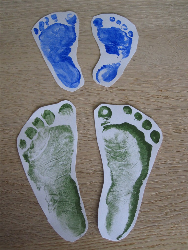 og så lige et lille tip. Put malingen på en svamp, og dup det så på fodsålen. så blir der et rigtig fint aftryk hvor man kan se folder, rynker osv