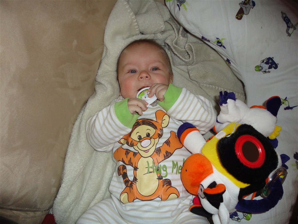 Går det godt med grød og mos? Og får han stadig mælk eller hvordan? Er så spændt på at skulle begynde her om et par uger.