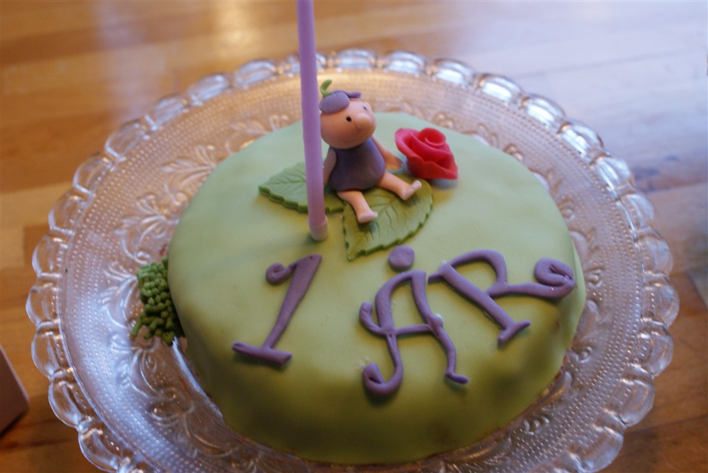 Idag er min dejlige datter fyldt 1 år. Og det er blevet fejret i stor stil med min svigerfamilie. Svigermor lavede kagen og jeg pyntede. Og synes bare den blev SÅ god. Det var første gang Isabella smagte kage. Så det var virkelig sjovt. Den lille var til hende, men hun fik dog ikke lov at kratte, men hun kunne ihvertfald godt lide det!