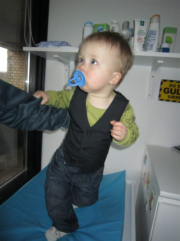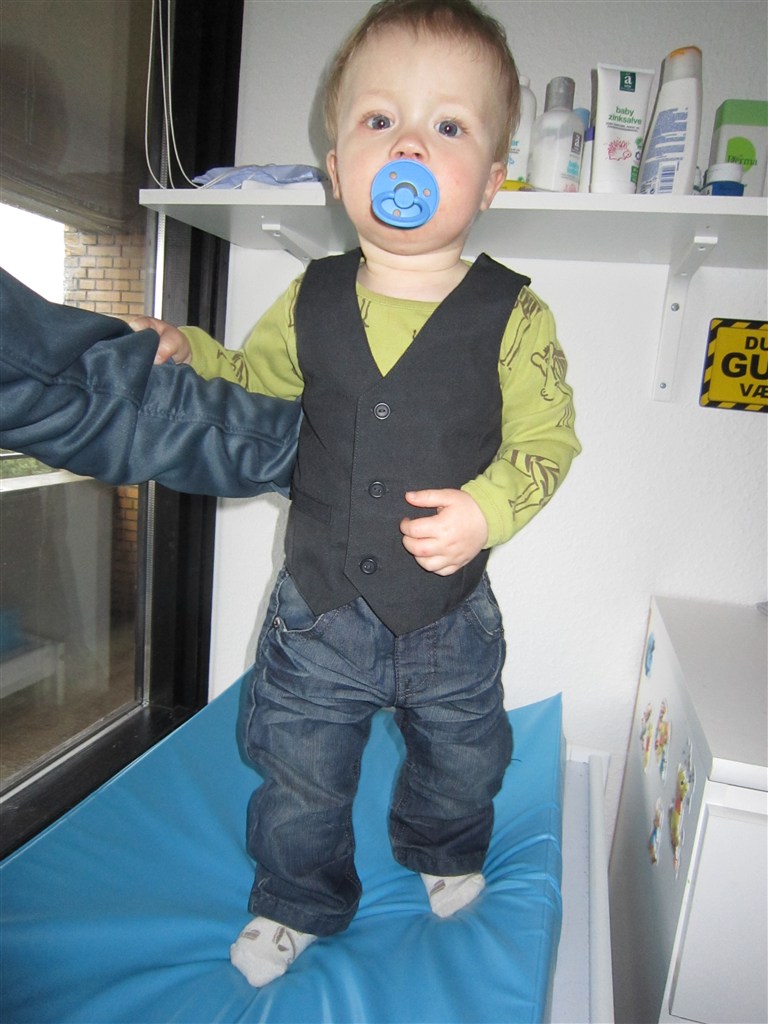 Han kan gå, snakke lidt og han bliver større og større, han er 76 cm lang og vejer 9,5 kg nu.