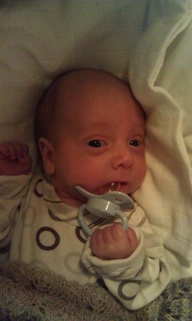 Her er et par billeder af lille David.. Han kom til verden i uge 29+4.. Det første billede er han ca. en uge.. dem jeg har fra fødsles/efter fødslen ligger han med en masse ting i hovedet.. så der kan man ikke rigtig se hvor meget der er sket.. Og det andet er fra sidste uge.. (7½ uge gammel ca..)