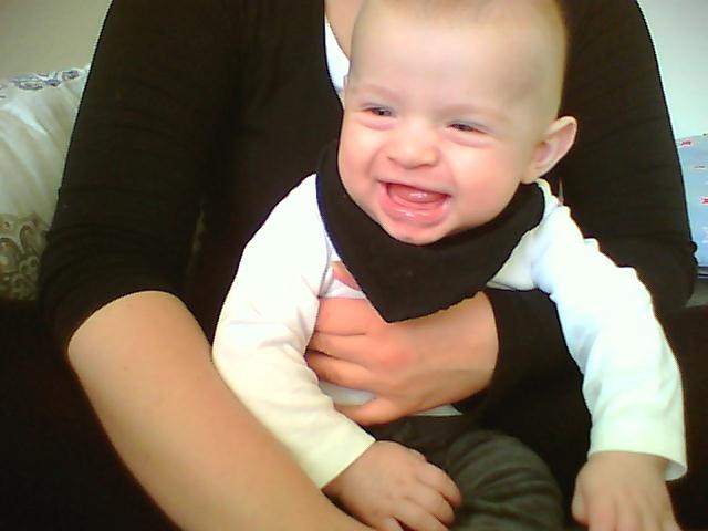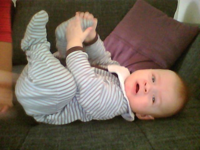Her er Cebastian, et par uger gammel og pakket ind i en stofble, og nu 7 mdr gammel: