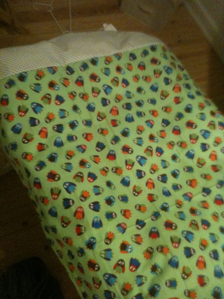 Er vild med stoffet med ugler .. Det har jeg også , bare med lilla baggrund Hehe