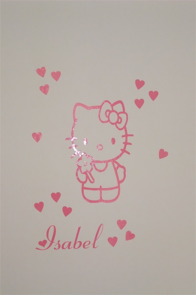 ) vedhæfter dem som hun har nu. Hendes elskede Hello Kitty og de lyserøde ugler. Da hun var to havde jeg en lyserød sticker over hendes seng med: Vi elsker dig til månen og tilbage igen.