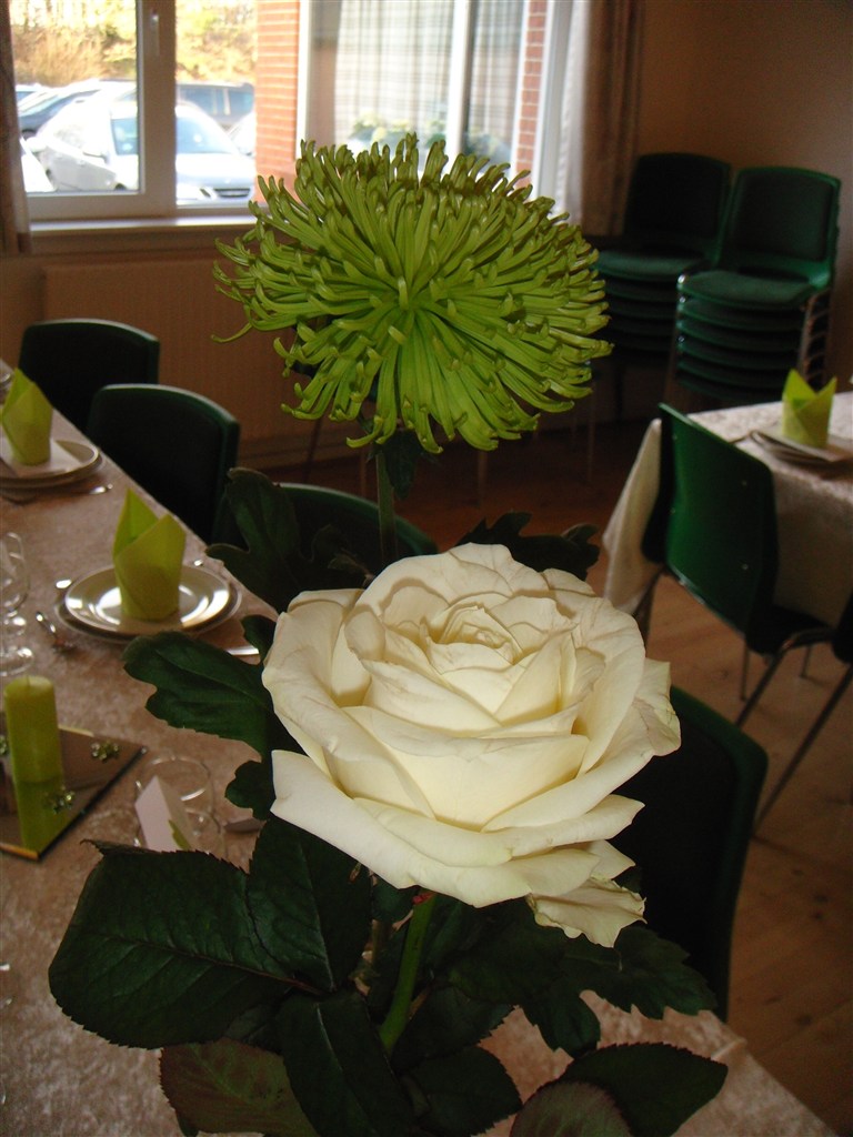 hos mig er yndlingsfarven limegrøn, så selvfølgelig skulle både dåbskjolebåndene og bordpyntet være i lime