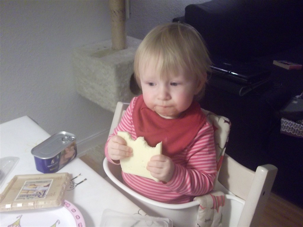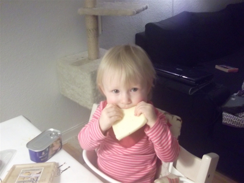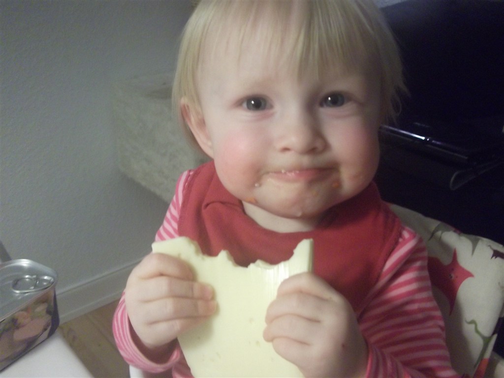 Laura elsker ost - men havde ikke lige set dette komme.. Synes ellers jeg havde sørget for at hun ikke kunne nå det, men hun har været meget langfingeret efter dem