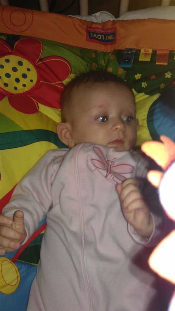 Fokusere meget på sin venstre hånd... Det er dejligt at se... Kan næsten selv holde hovedet...