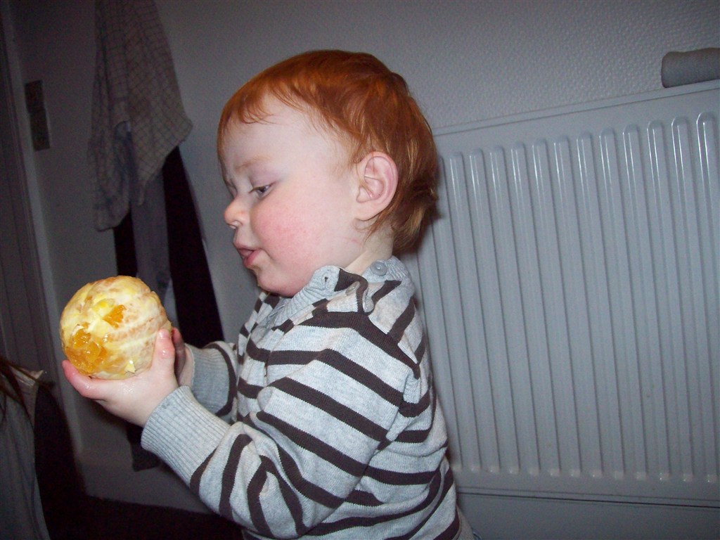 Jo jo , i dag satte jeg ham 2 min. foran com. for at se teletubbies , det var ikke længe han gad sidde der , men nåede da og få lidt billeder af ham