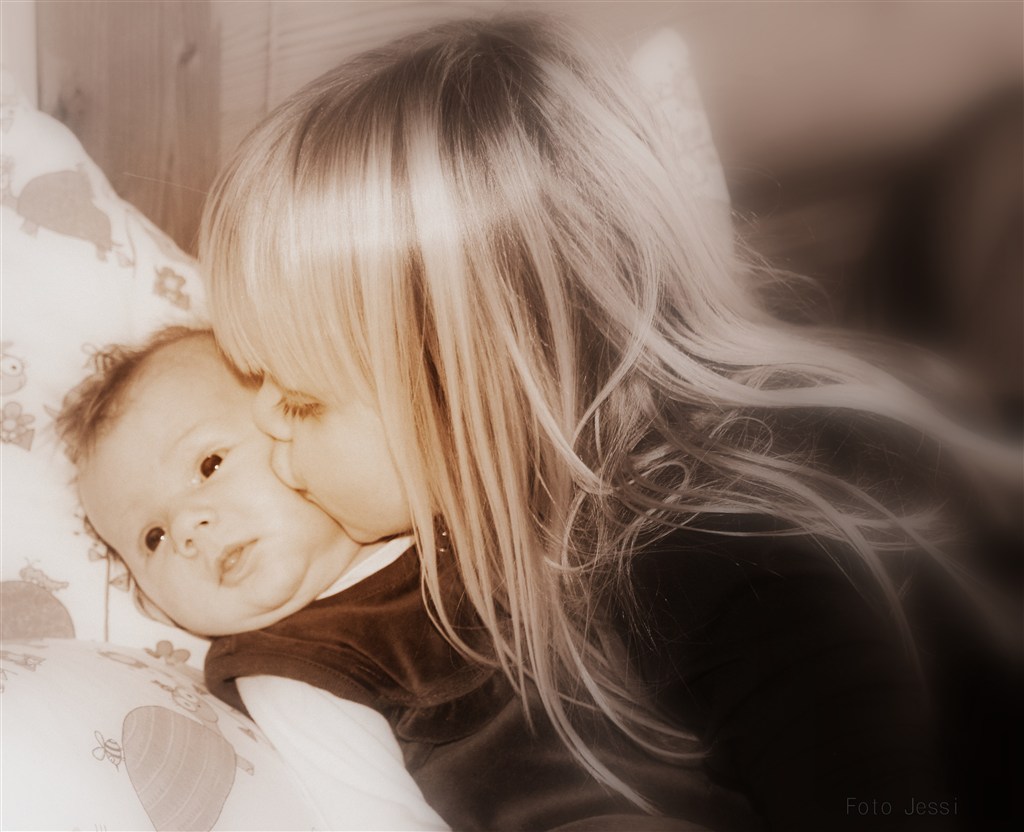 Kunne ikke ønske mig en bedre storesøster.. Hun er bare så glad for hende.. Hun vil kysse,nusse og kramme hele tiden.. :-) Jeg er lykkelig for at jeg er blevet beriget med 2 smukke og dejlige piger