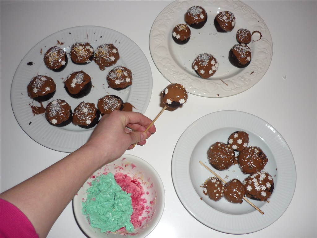 Jeg har prøvet at lave cake pops..... Men jeg tror ikke at det er muligt at lave nogle mere mislykkedes nogle end mig... De kunne ikke engang holdes på pinden(kun en), og jeg puttede konditorfarve i hvid chokolade og det havde jeg da ikk tænk på at man ikke kunne