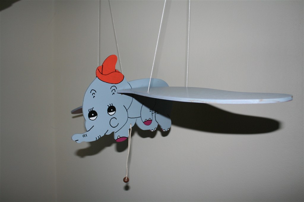 Lyseblå elefant med vinger. Kr. 75,- afhentes