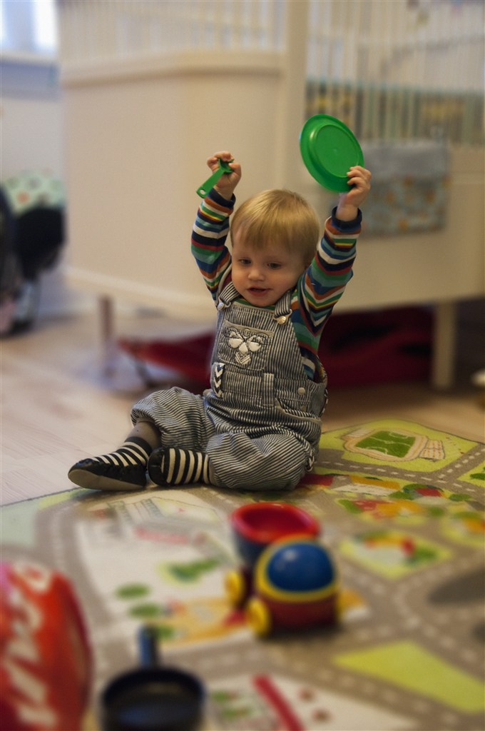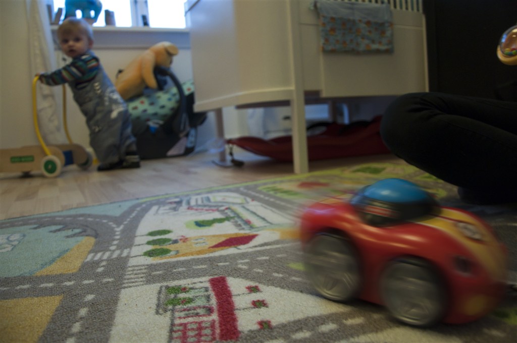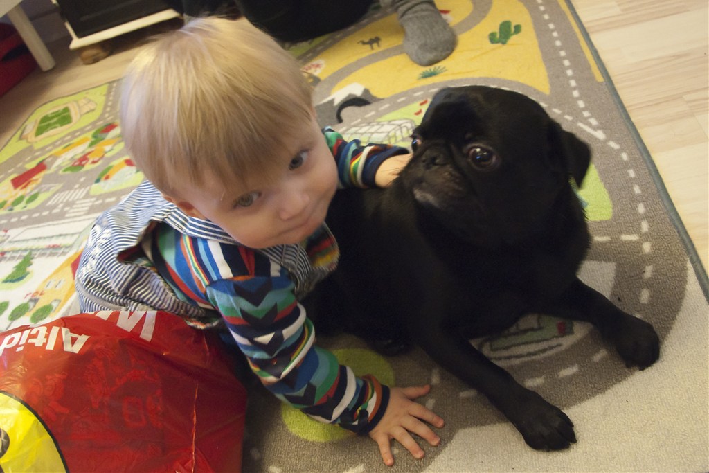 så venter vi på at han begynder at ville stå selv og gå.. han tør ikke rigtig endnu at give slip. og når vi vil holder ham i hænderne og går lidt rundt med ham (hvis vi f.eks skal ind og lege på værelset eller hvis vi er på værelset og lege og han skal ind og spise, sådan så vi ikke bærer rundt på ham hele tiden.. ) så løfter han benene og bliver hysterisk. jeg vil jo ikke presse ham til det, han er tydeligt ikke klar. men han vejer fanme ti kilo og han er TUNG at bære rundt på efterhånden. men han kravler lystigst og hurtigt og han kommer da også når vi kalder, han er sgu blevet så stor..
