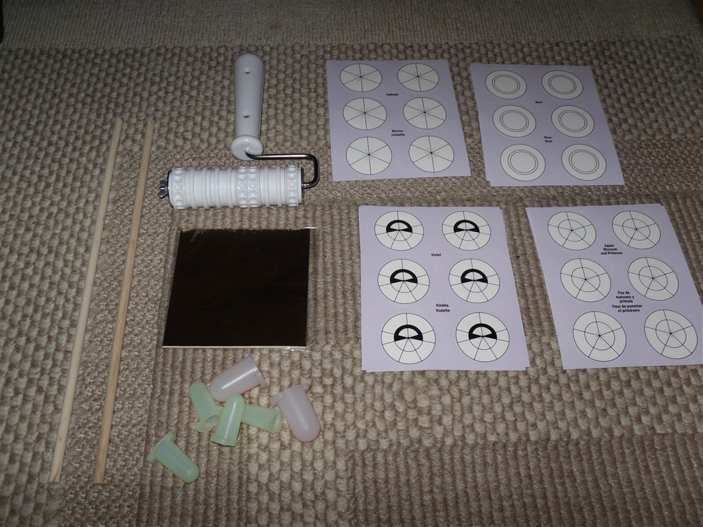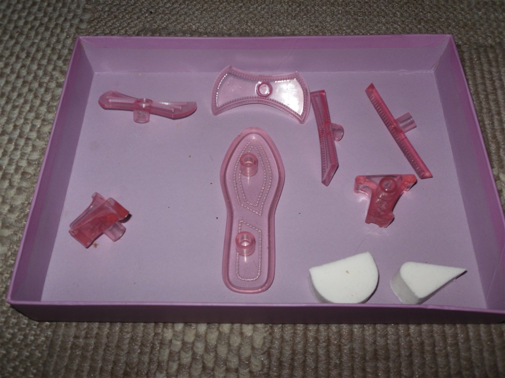 Billede 16: Aner ikke hvad de ting er, de fulgte med i kassen fra min mor: Den nederste firkant er guld papir, det til højre.. Ved I hvad man skal bruge disse 4 forskellige ting?