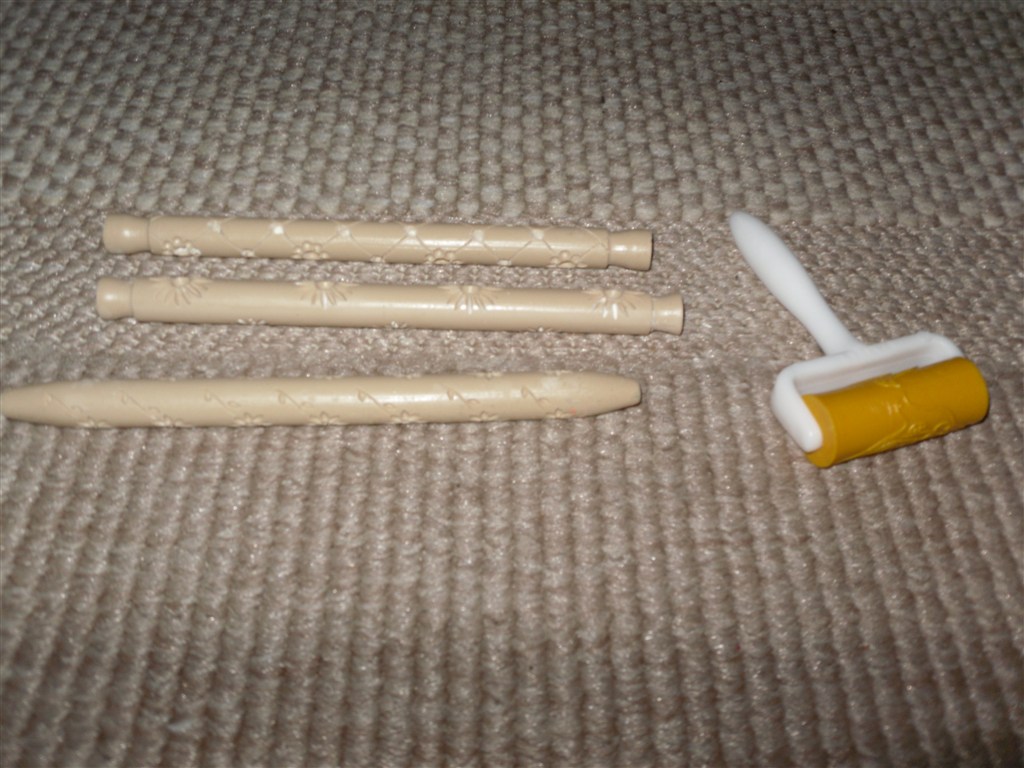 Billede 5: Øverst: Holdere til at tørre fondant på. F.eks. blomster osv. Nederst: Fondant smoother