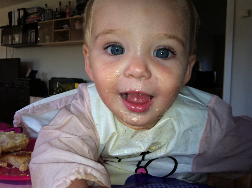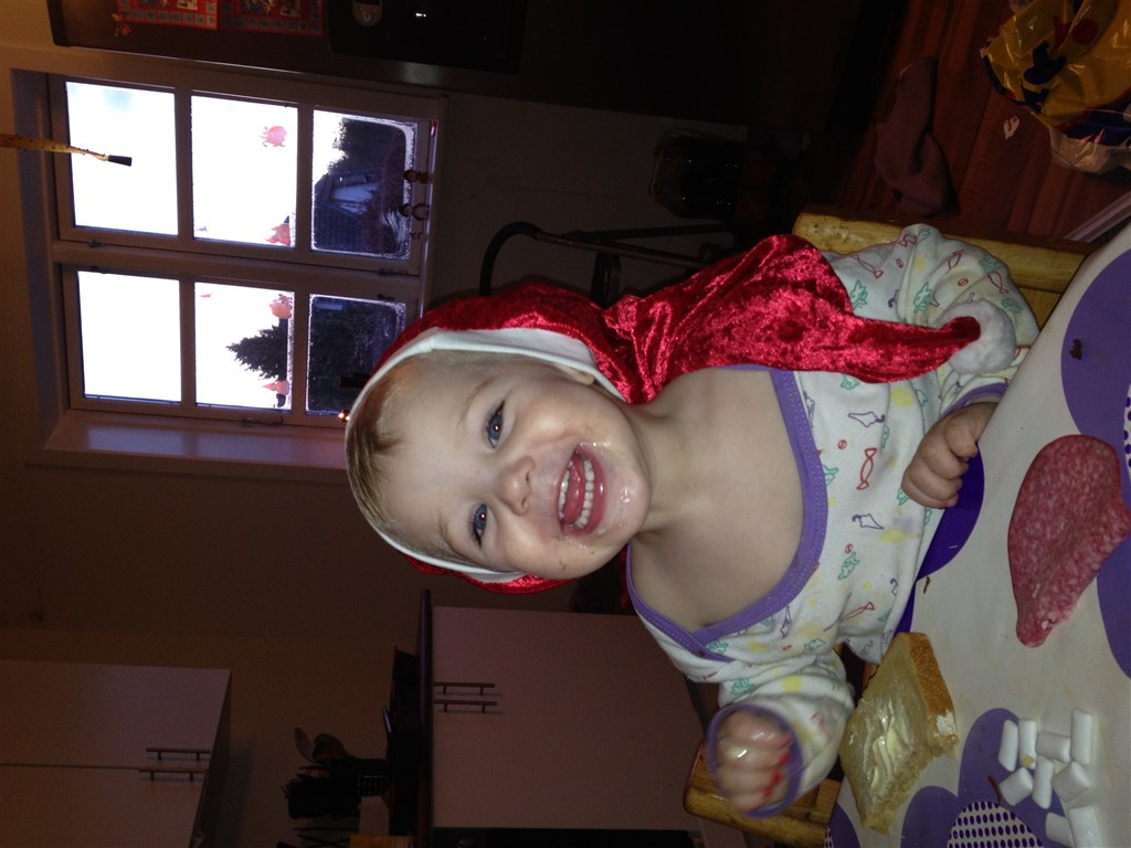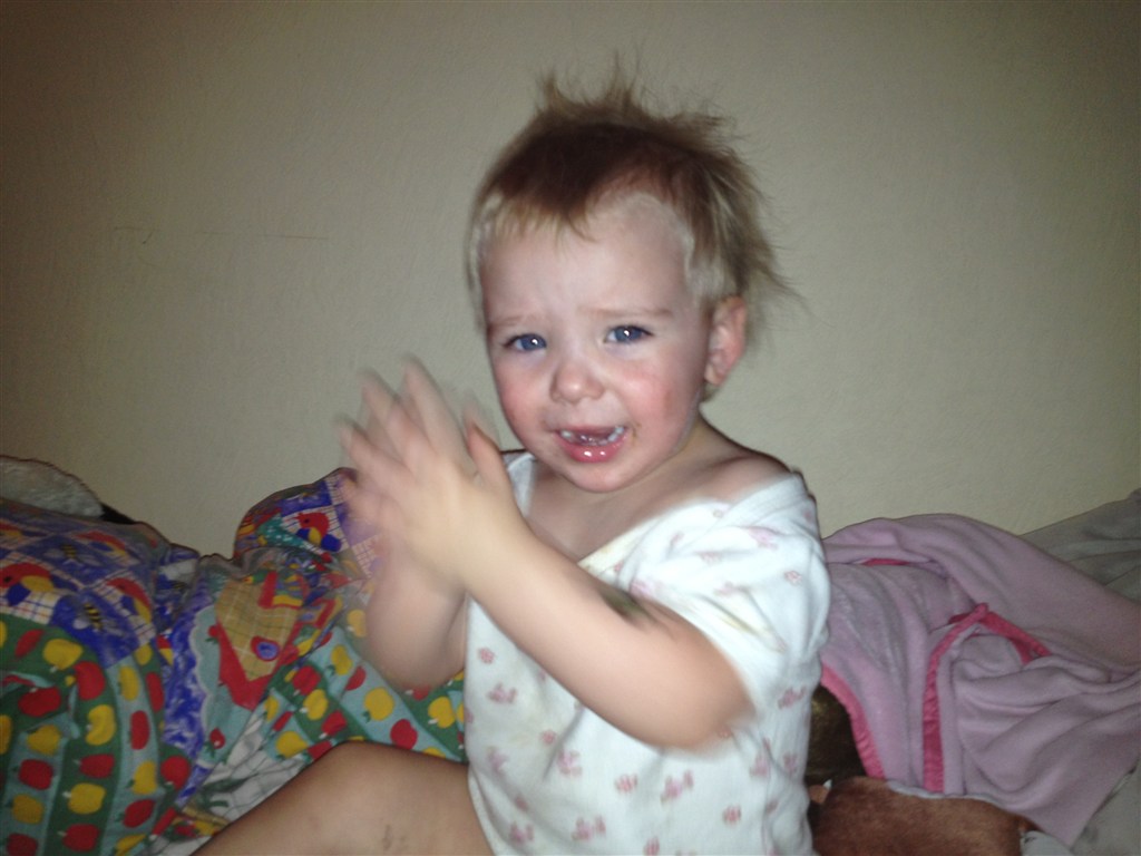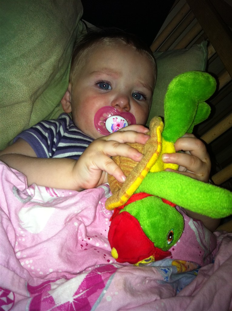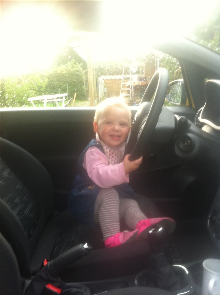 hun er blefri når vi er hjemme, har haft forbinding på armen pga både mig og hendes far var uopmærksomme i 2 sek, og hun faldt ned i mit glattejern, og fik nogle slemme brandsår, som så er ar nu