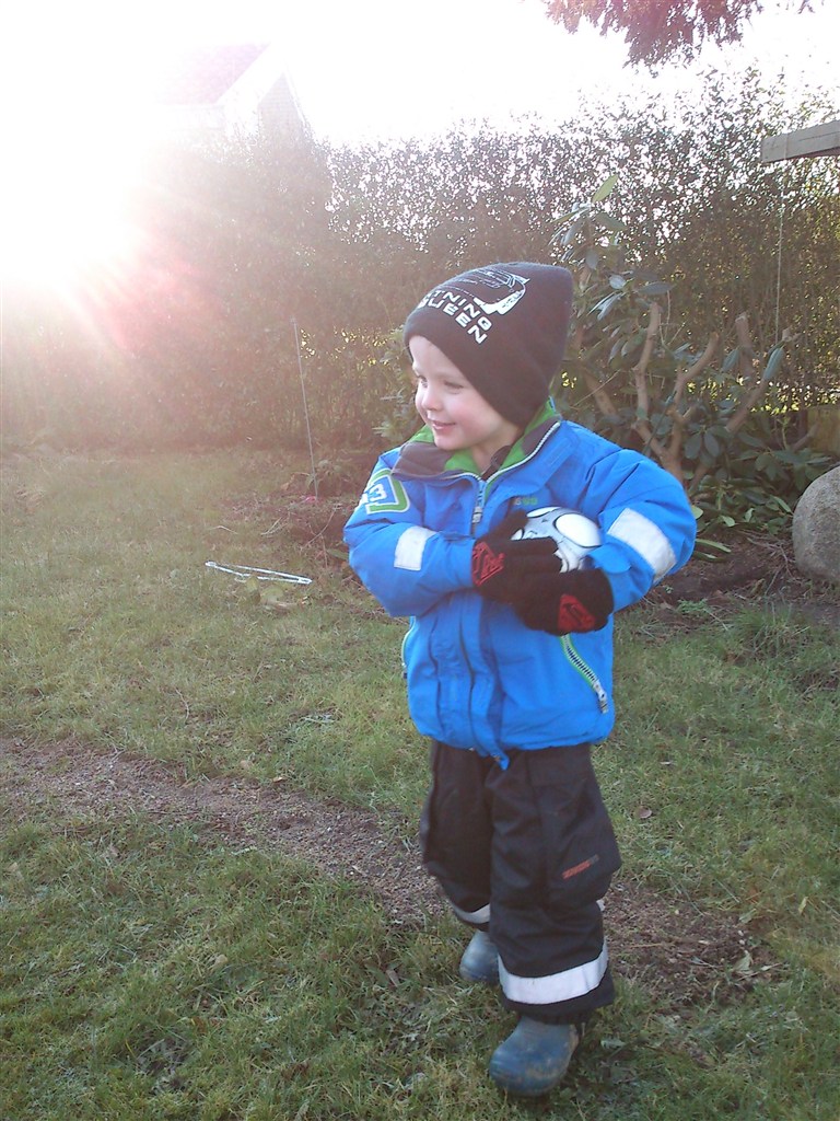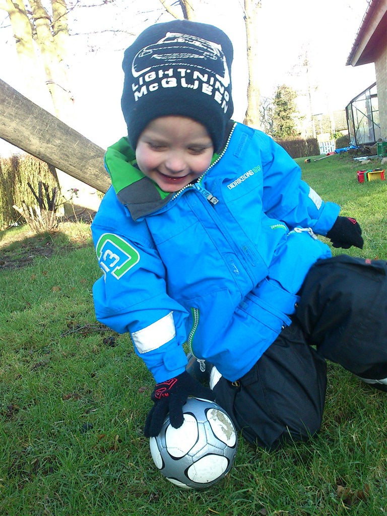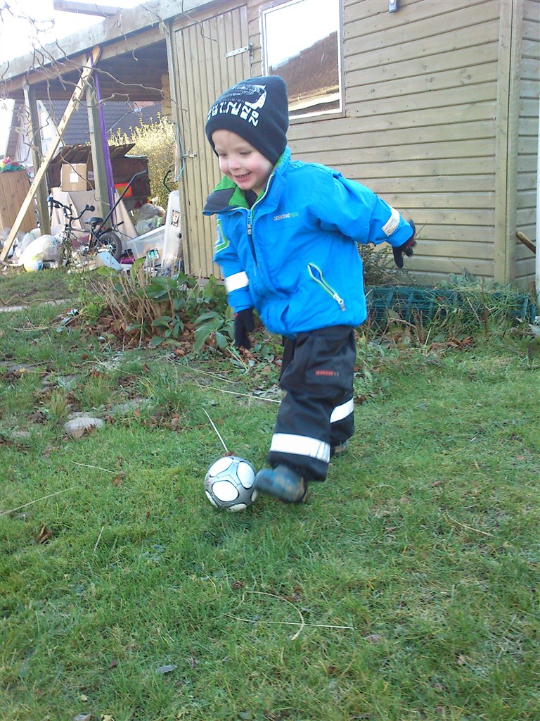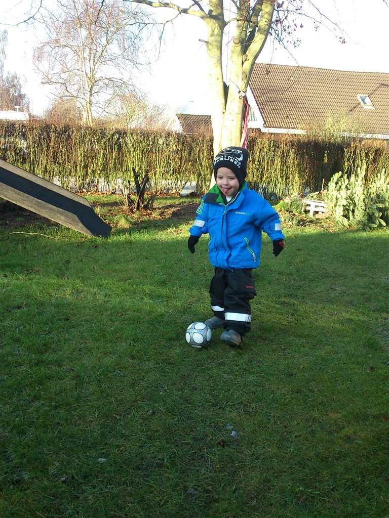 Kan kun give dig ret... Alle billeder er taget her i januar og leg på græsplænen er ham og jeg der fjoller rundt udenfor... Der hvor han har bolden i armene, er hvor han snyder og prøver at stikke af med bolden...