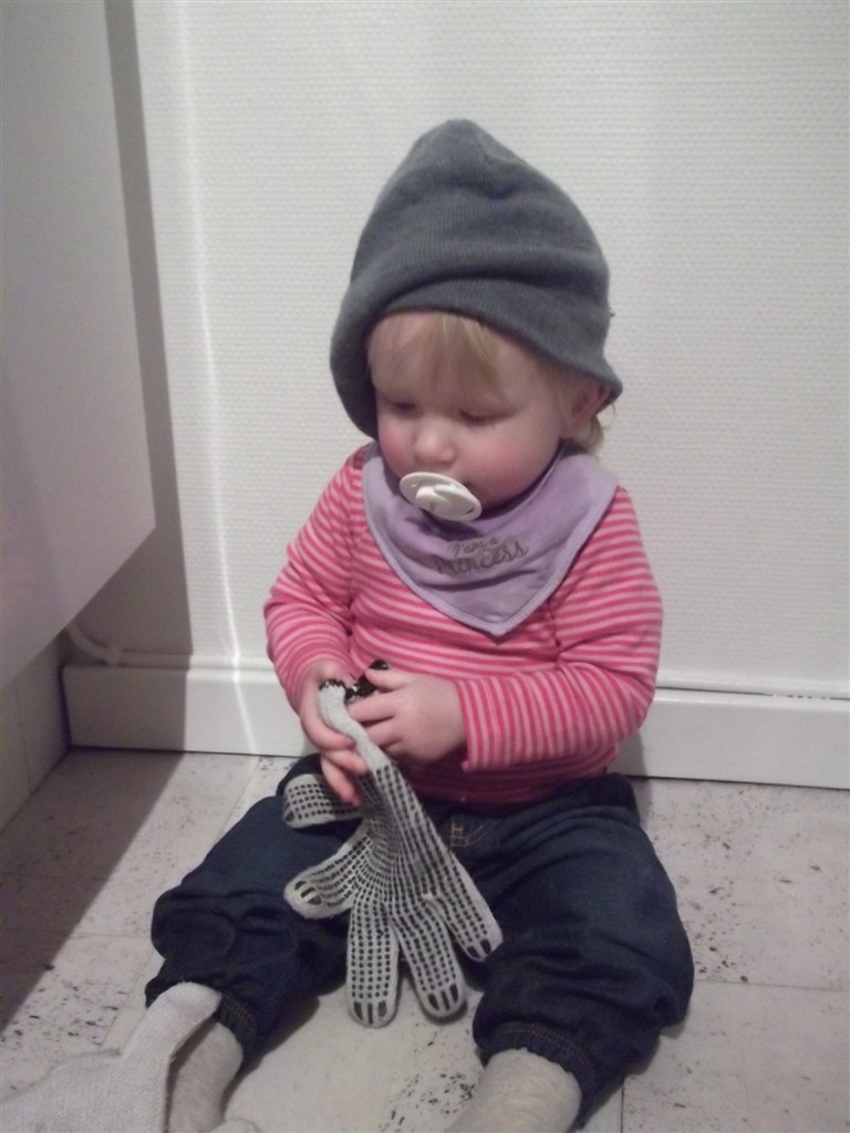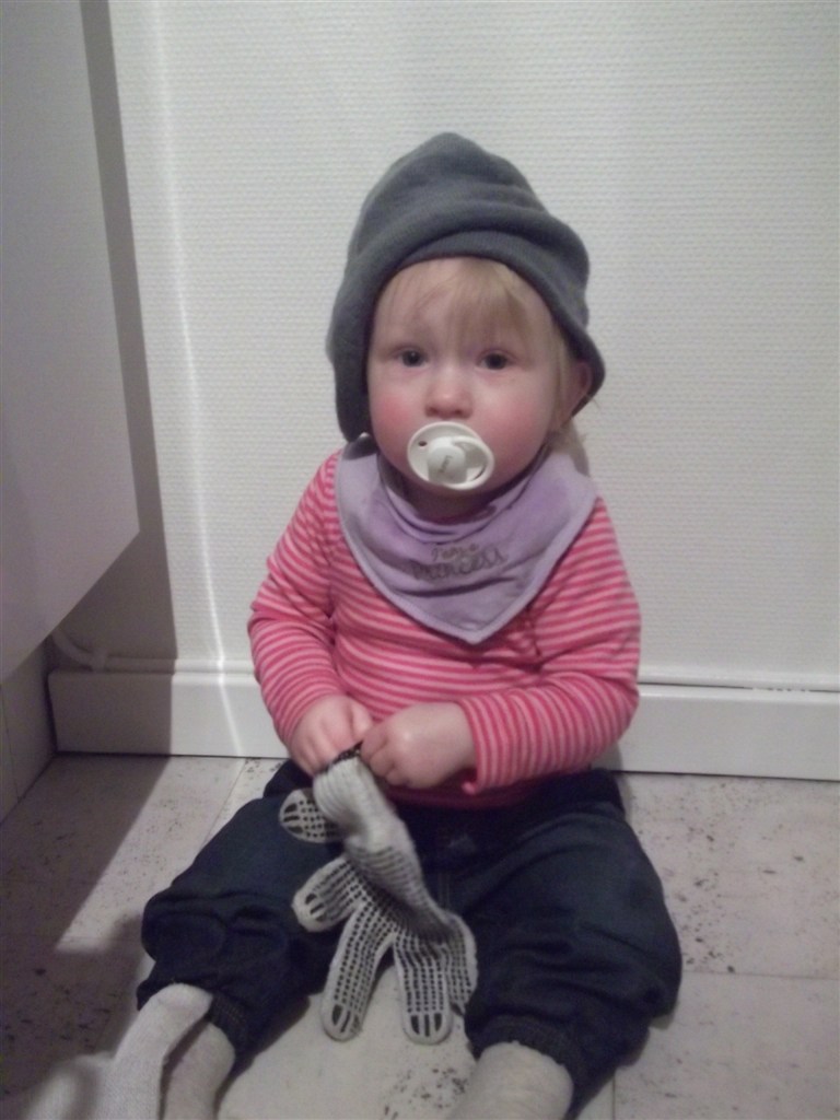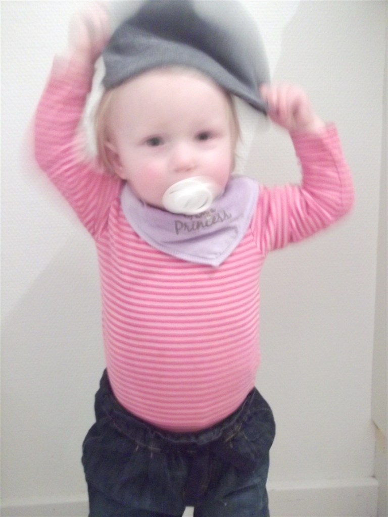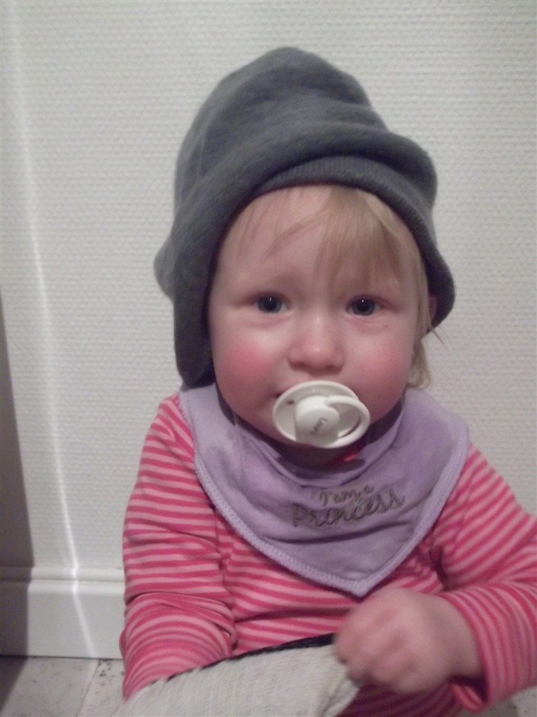 Nadia&Daniel skriver: Fik lige taget lidt hyggelige billeder af Laura med far's hue hertil aften