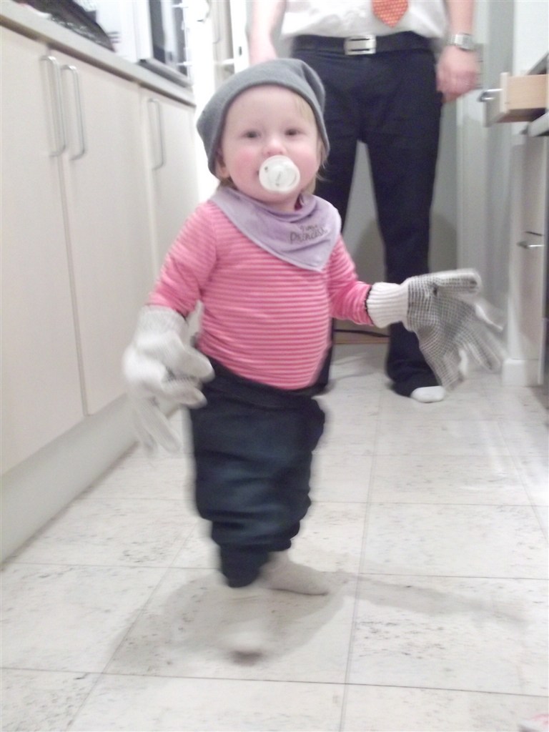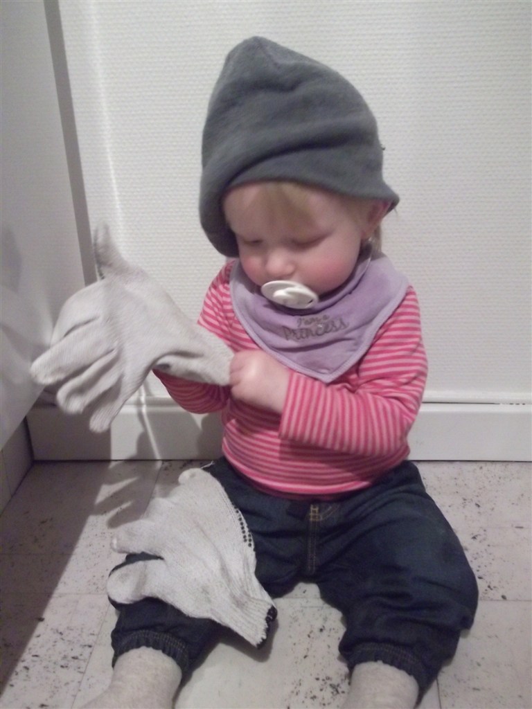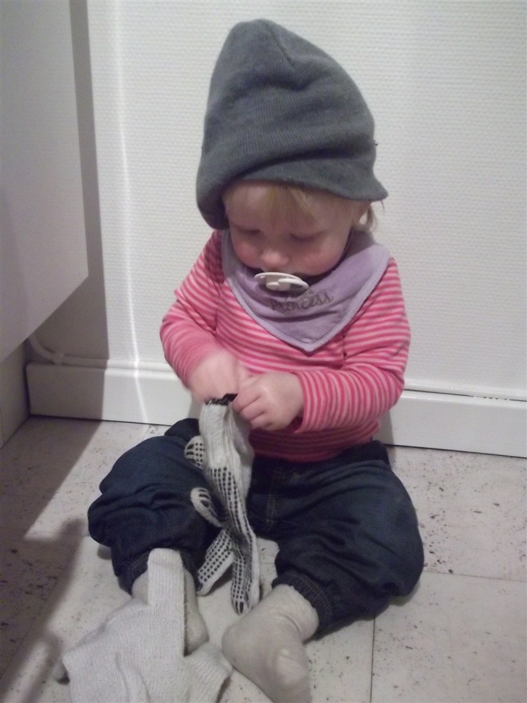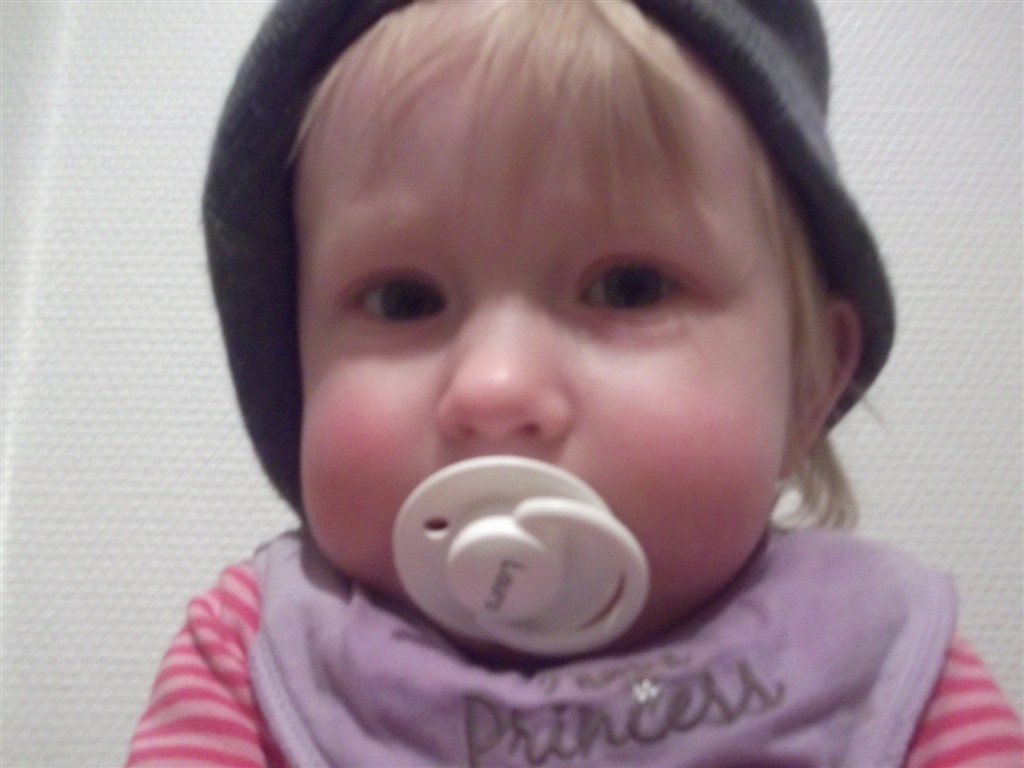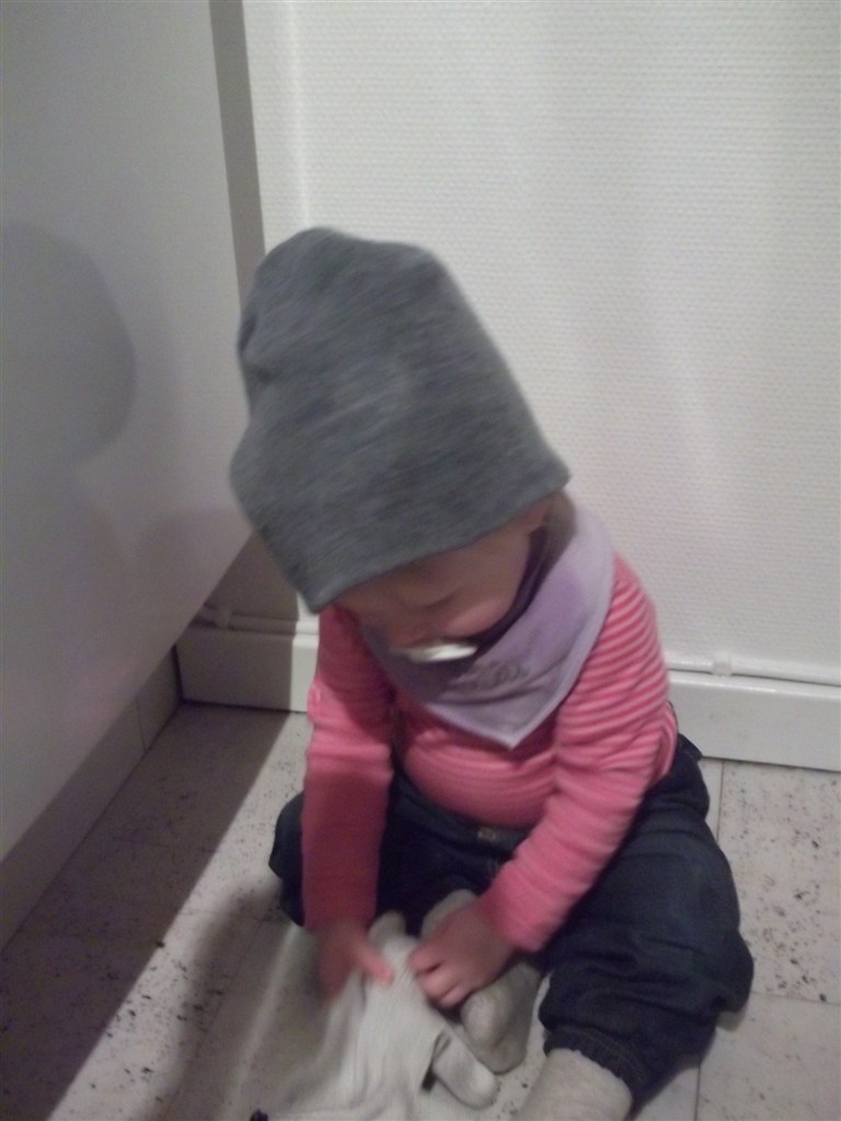 Nadia&Daniel skriver: Fik lige taget lidt hyggelige billeder af Laura med far's hue hertil aften
