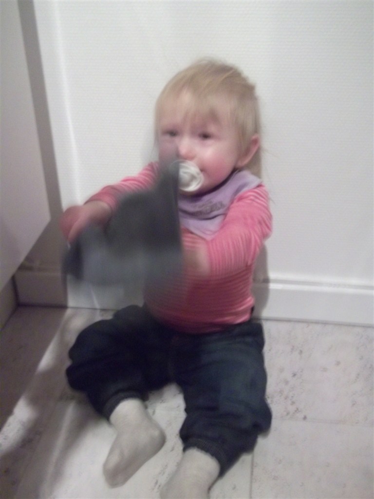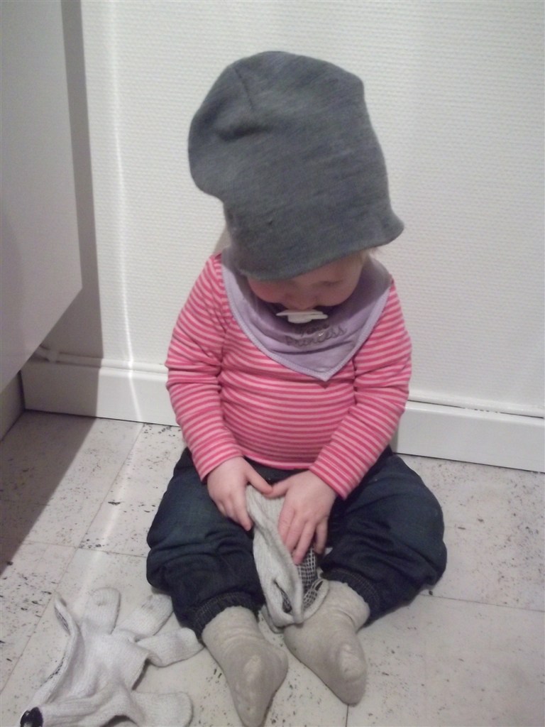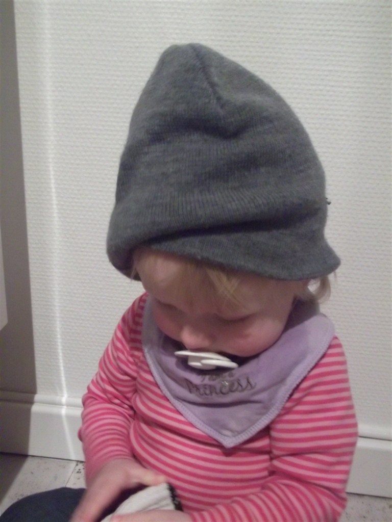 Fik lige taget lidt hyggelige billeder af Laura med far's hue hertil aften