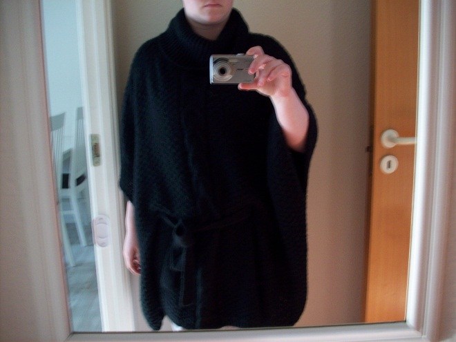 undskylder hvis det er lidt bøvlet, men mere for at se længden på og hvordan den sidder..ponchoer falder på mange forskellige måder