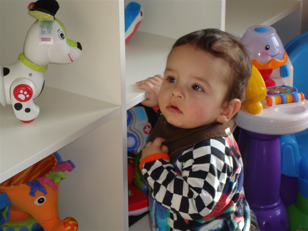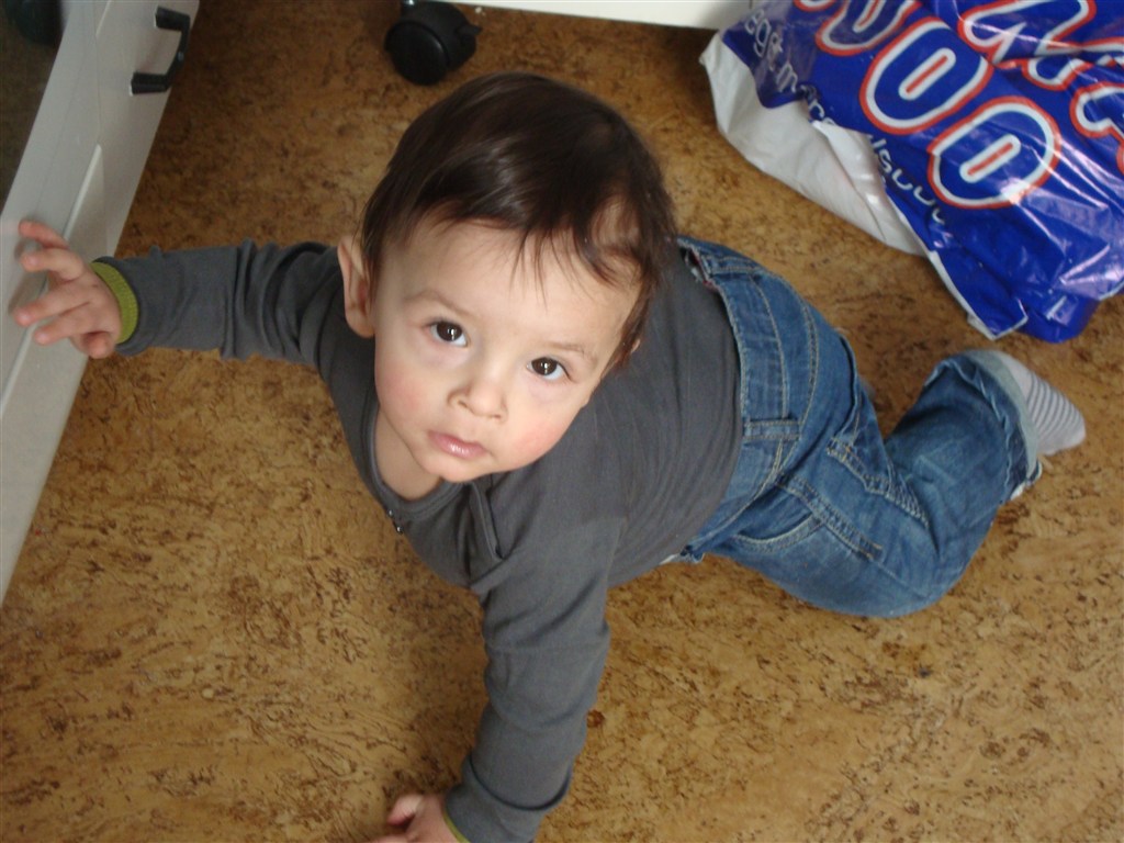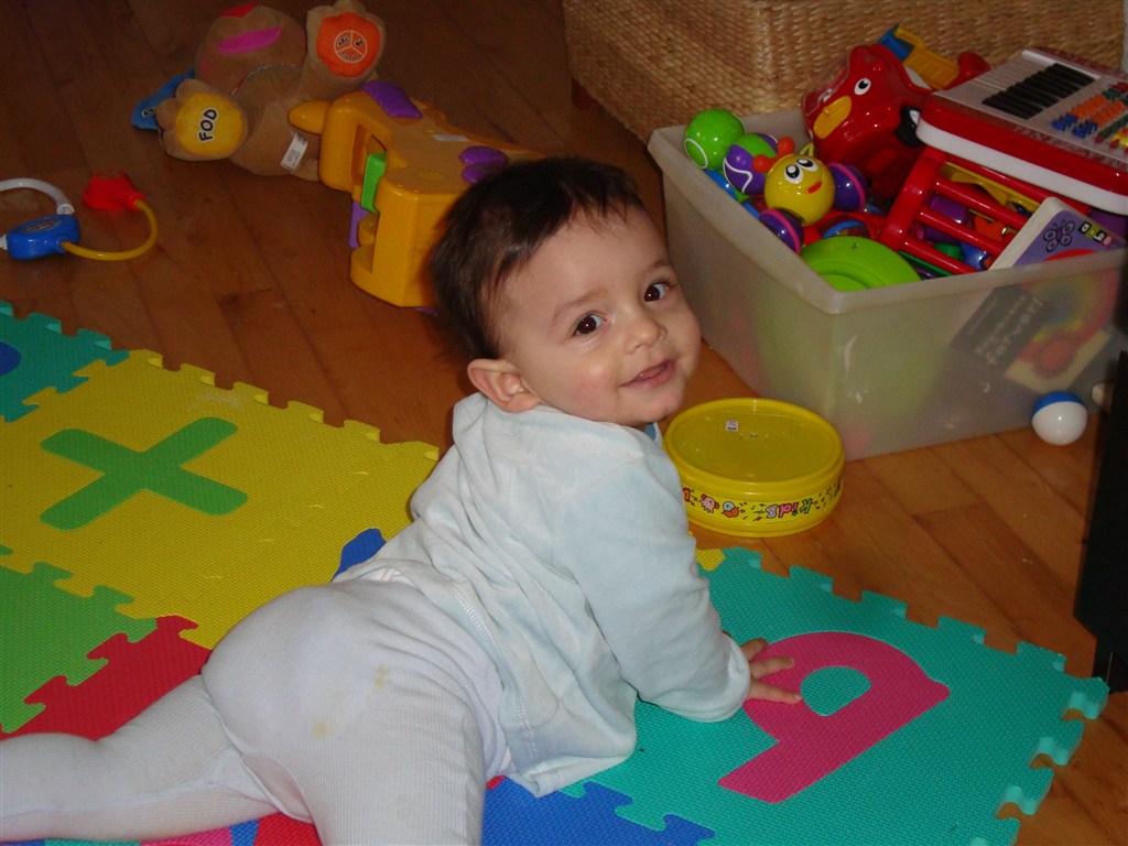 Han kravler i bedste militær stil, har forsøgte at rejse sig op for et par dage siden, men ellers ikke udvist interesse for det.