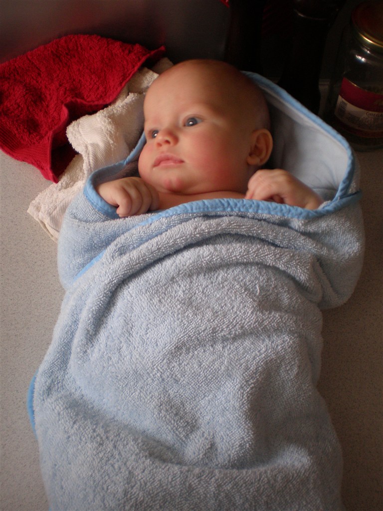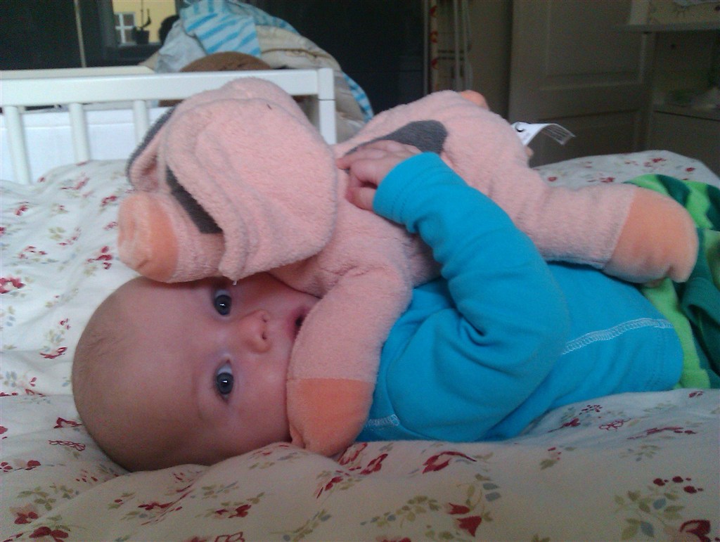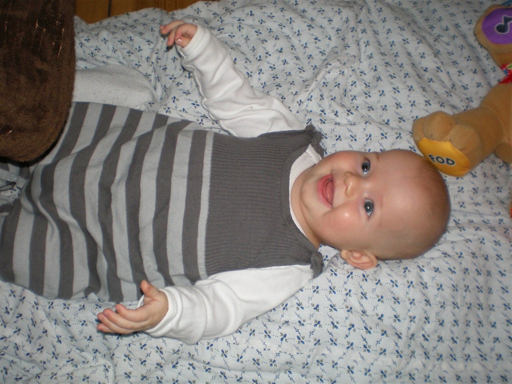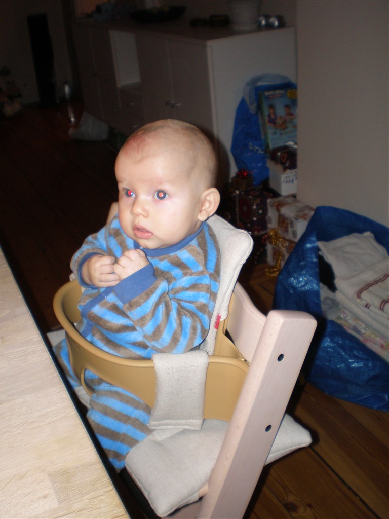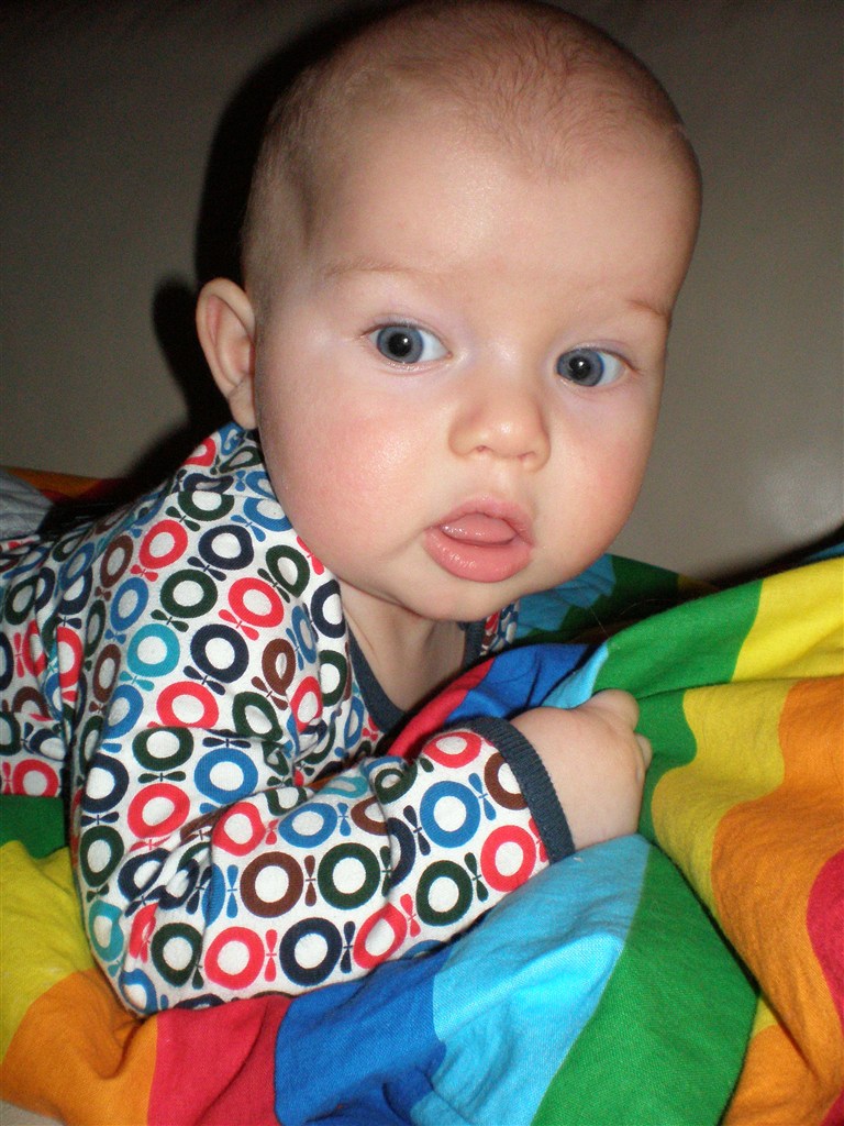 Han har ikke været til sin 5 måneders undersøgelse endnu, så jeg ved ikke præcis hvor stor han er. Men for en måned siden, vejede han 7,3 kg og var 68 cm lang! Så han er en stor dreng Mon ikke vi har rundet de 8 kg? Det tror jeg vist nok hehe.