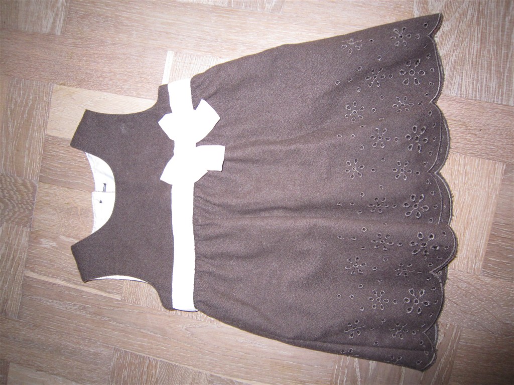 1. Brun kjole med lyserødt bindebånd (H&M) brugt 2 gange, str. 62, pris: 40,-
