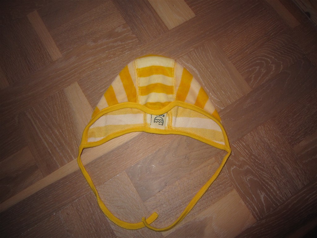 4. Hue, Småfolk (til den lille side), str. 62, pris 30,-