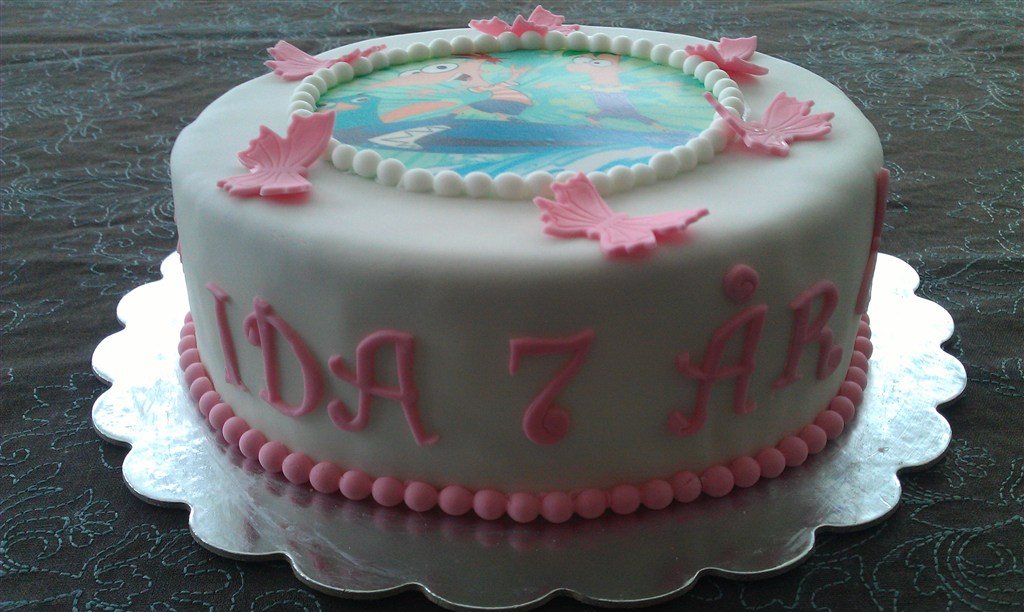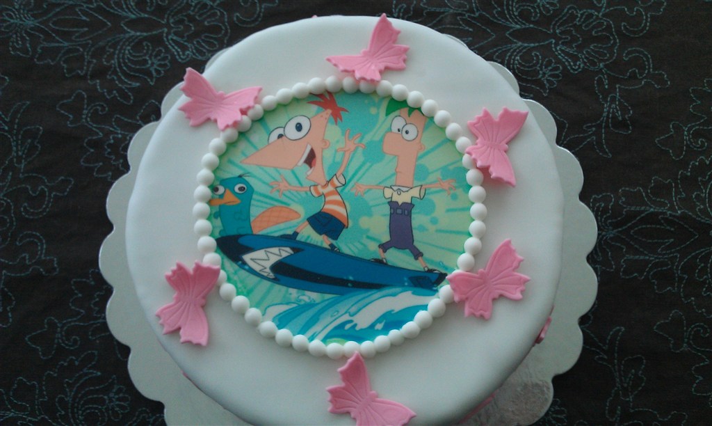 Phineas kagen og Karla dåbskage, var til sammen famile, hun havde fødselsdag i går, og er helt vild med Phineas og Ferb, billedet på kagen er her fra