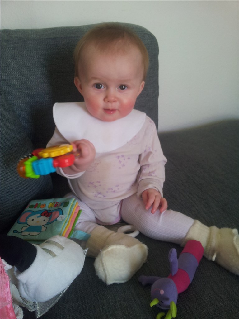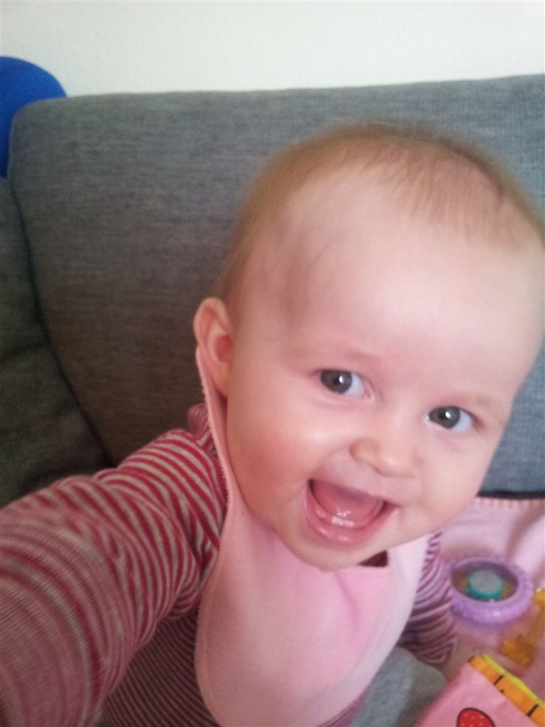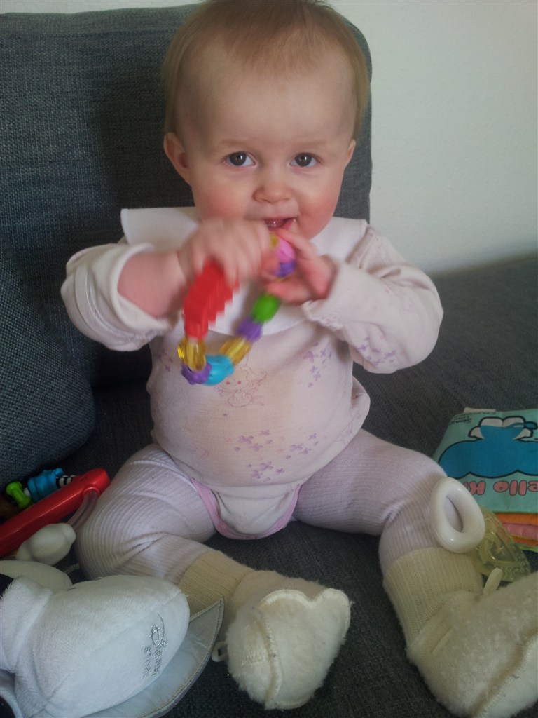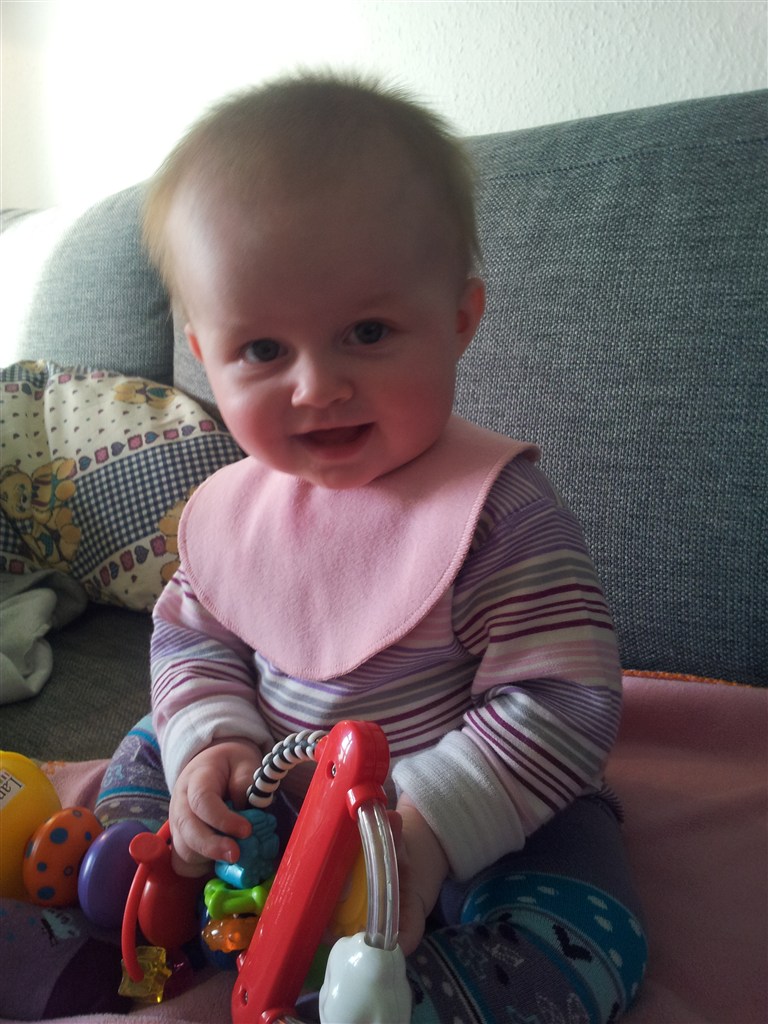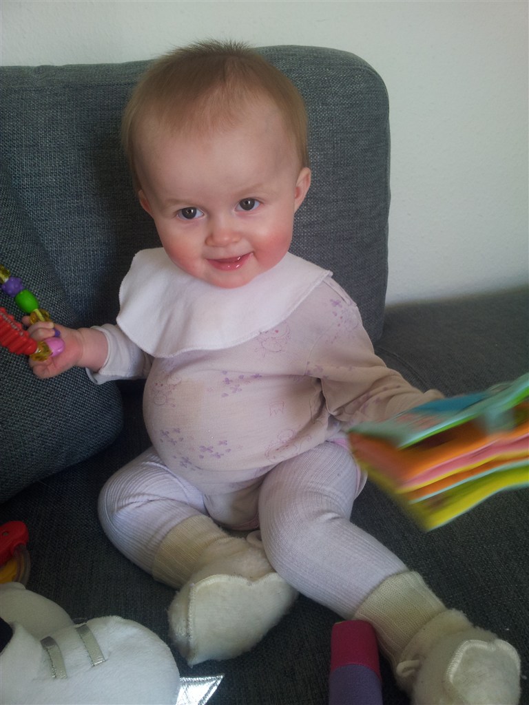 ja hun er nu 8,5 mdr. hold kæft tiden er fløjet afsted det er da vildt. hvor er min lille baby henne. synes sgu ikke helt jeg er klar på at hun skal kunne så mange ting selv. hehe
