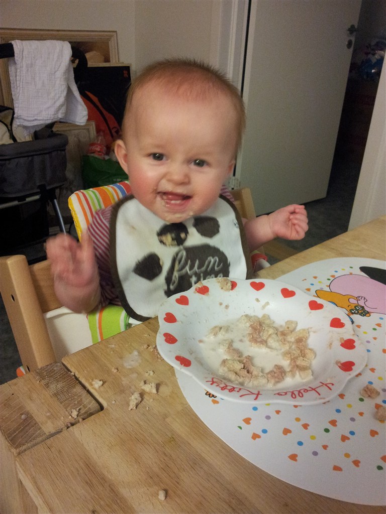 så vi har en meget træt men glad pige når hun kommer hjem efter en dag i vuggestuen.