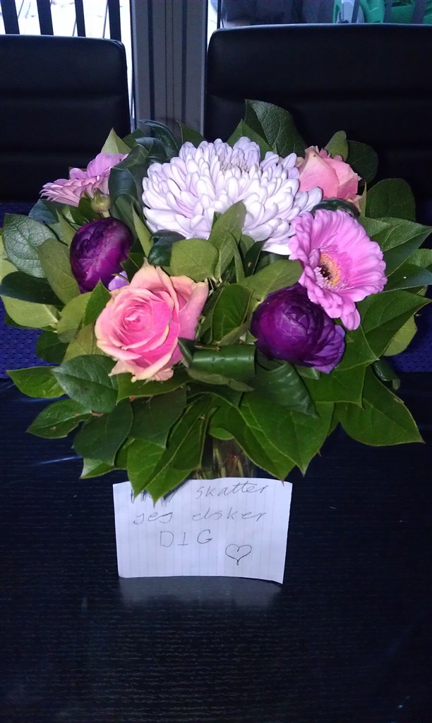 da jeg så kommer hjem fra byen af. Ligger der rosenblade over alt inde i stuen og en buket blomster og et lille brev hvor der står : hej skatter jeg elsker dig <3 fik helt tåre i øjnene .. mit hjerte smeltede bare helt ... Blev bare så glad, har det bare så godt fortiden. Vi har været sammen snart 7 år.. og har fået en dejlig lille søn for 2 måneder siden