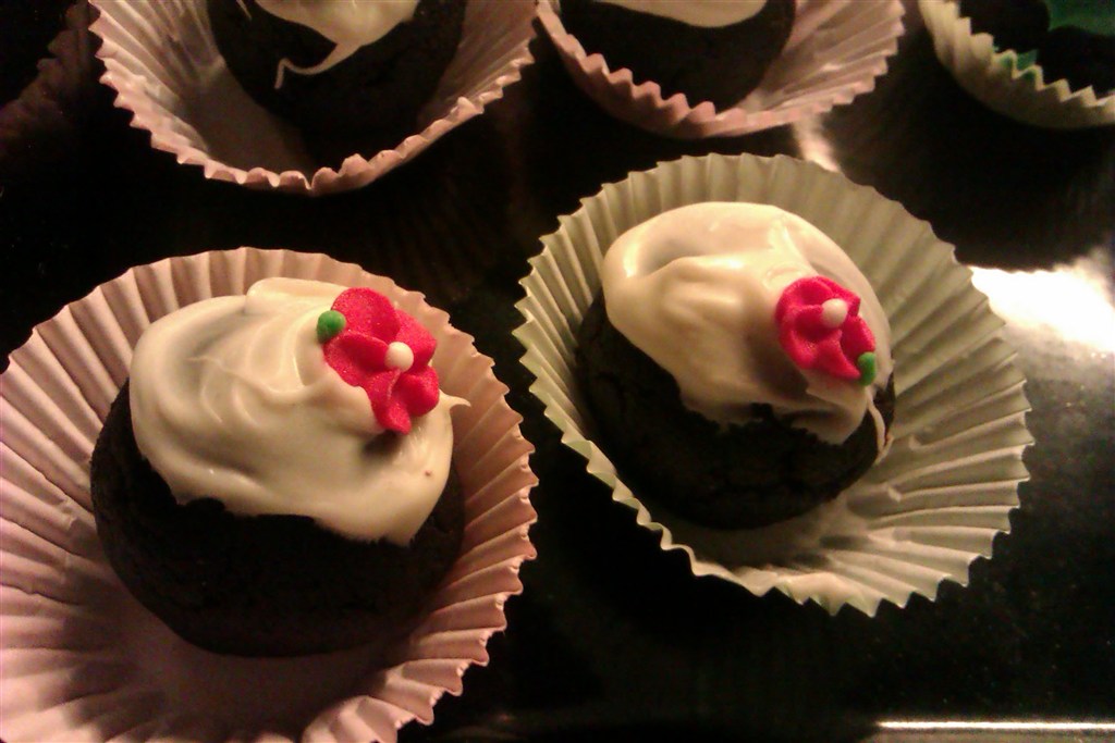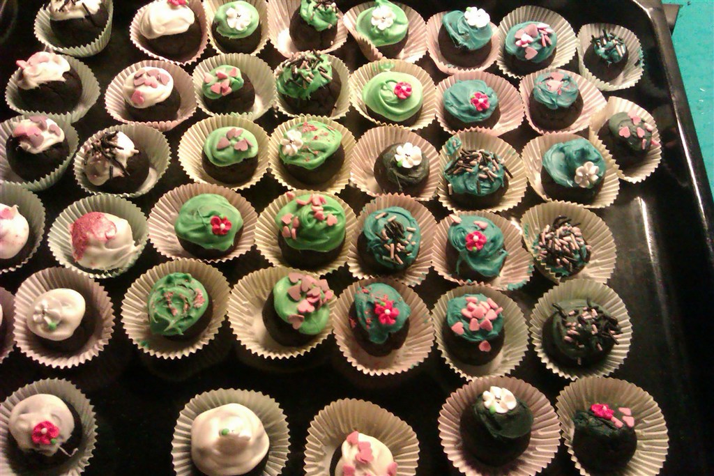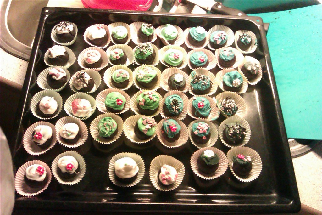 så det blev små bolde i muffins papir med chokolade pynt på toppen.. pg de smagte bare Rigtig lækkert !