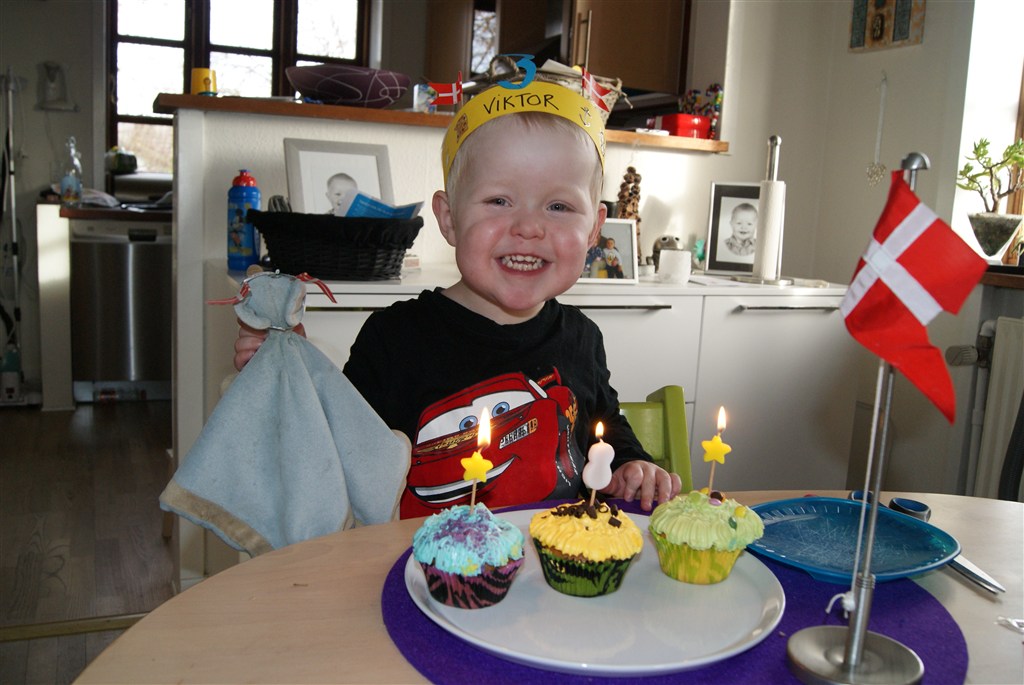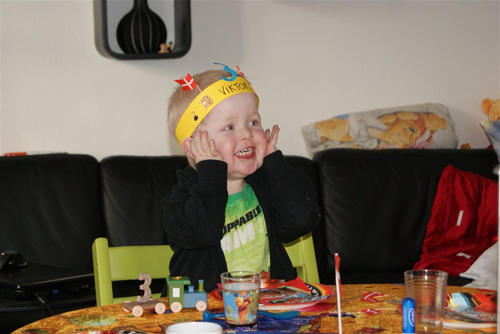 SÅ blev Viktor 3 år (d. 23 feb) , og han havde en dejlig fødselsdag. Han er startet i børnehave og det går rimeligt, men det er også noget af en anden hverdag vi skal have nu. Kronen er fra børnehaven, og da han kom hjem, skulle hans MoMo mus jo også have en. Det fine prinsesse papir har han selv valg, i kan tro farmand var stolt