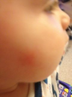 min datter har en rød plet på kinden på str med en 1 krone, den er rød og varm, den blusser op hver morgen.