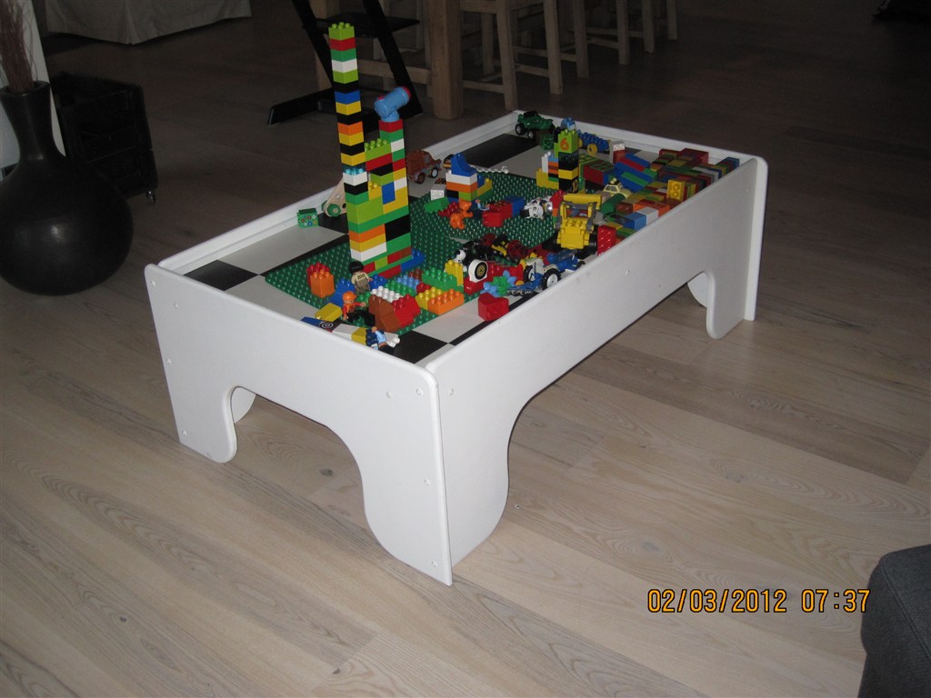 et legebord!!!! vi byggede et bord til vores sød til at lege på. der er lille kant rundt på ca 4 cm så tingene ikke så let falder ned. Lige nu er der duplo på, men vi har haft al slags legetøj derpå. Kunne være perfekt til et dukkehus eller "little people" osv. Der er så dejligt at tingene ikke ligger rungt over hele huset og det bedste af alt er at vi kan lettere være med, da det ikke er helt nede på gulvet. Vi har kopieret det bord som hedder "Brio legebord" og lagt vinyl i bunden. Originalt koster det over 3000,- med brede ben. Syns faktisk vores er flottere end det rigtige