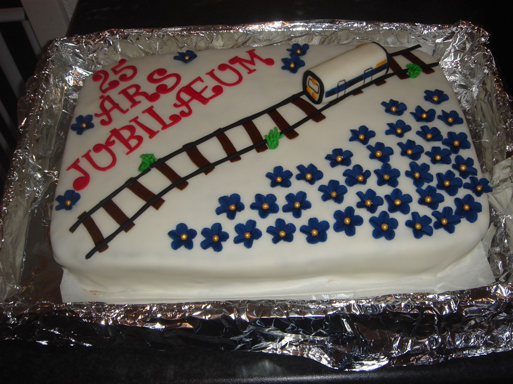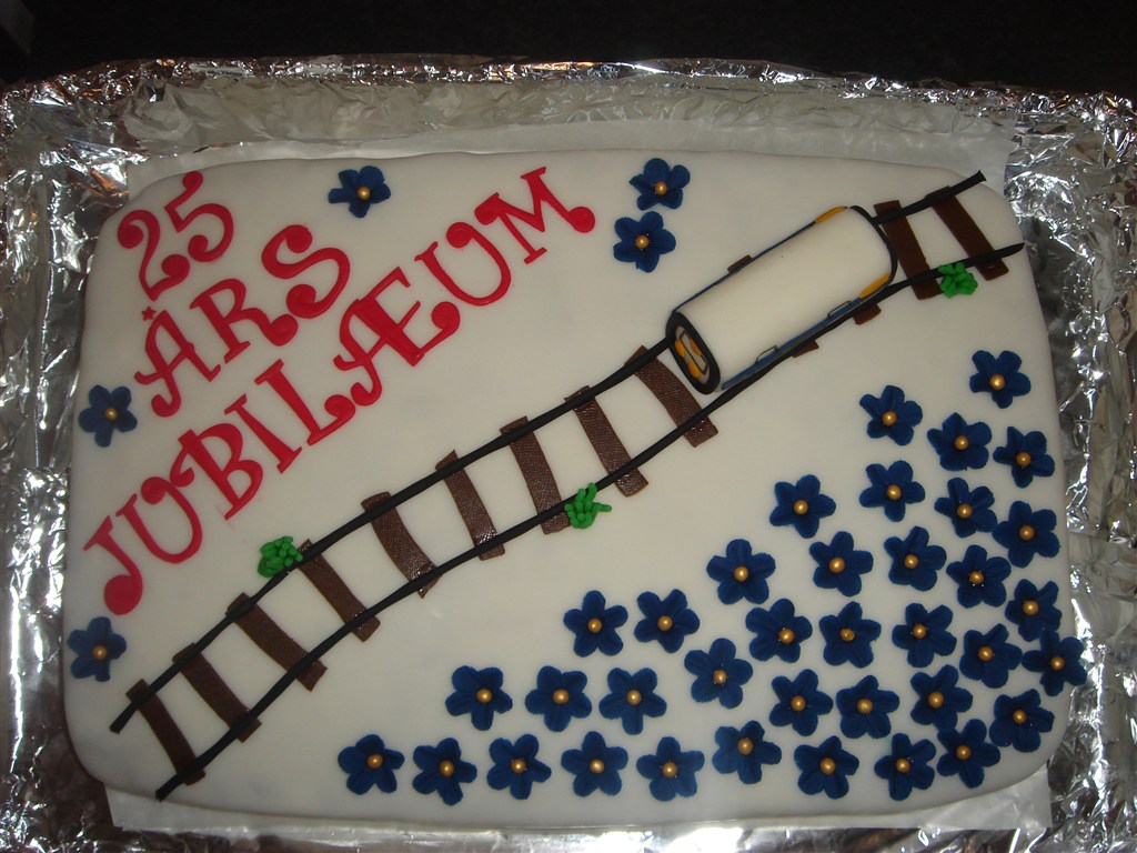 merichs skriver: Min kollega havde 25 års jubilæum og jeg blev bedt om at lave kage. Den blev lidt "bulet" men jubilaren blev meget glad for den