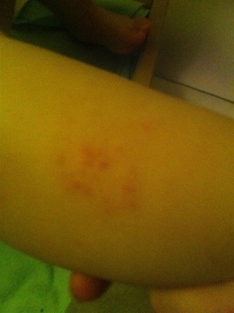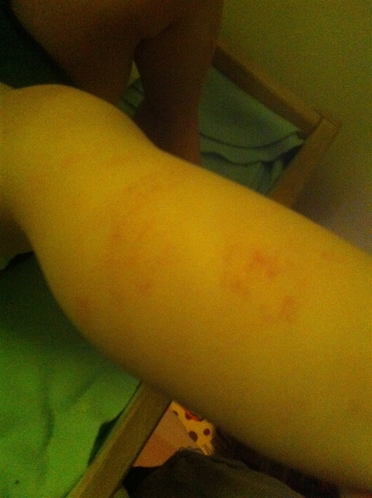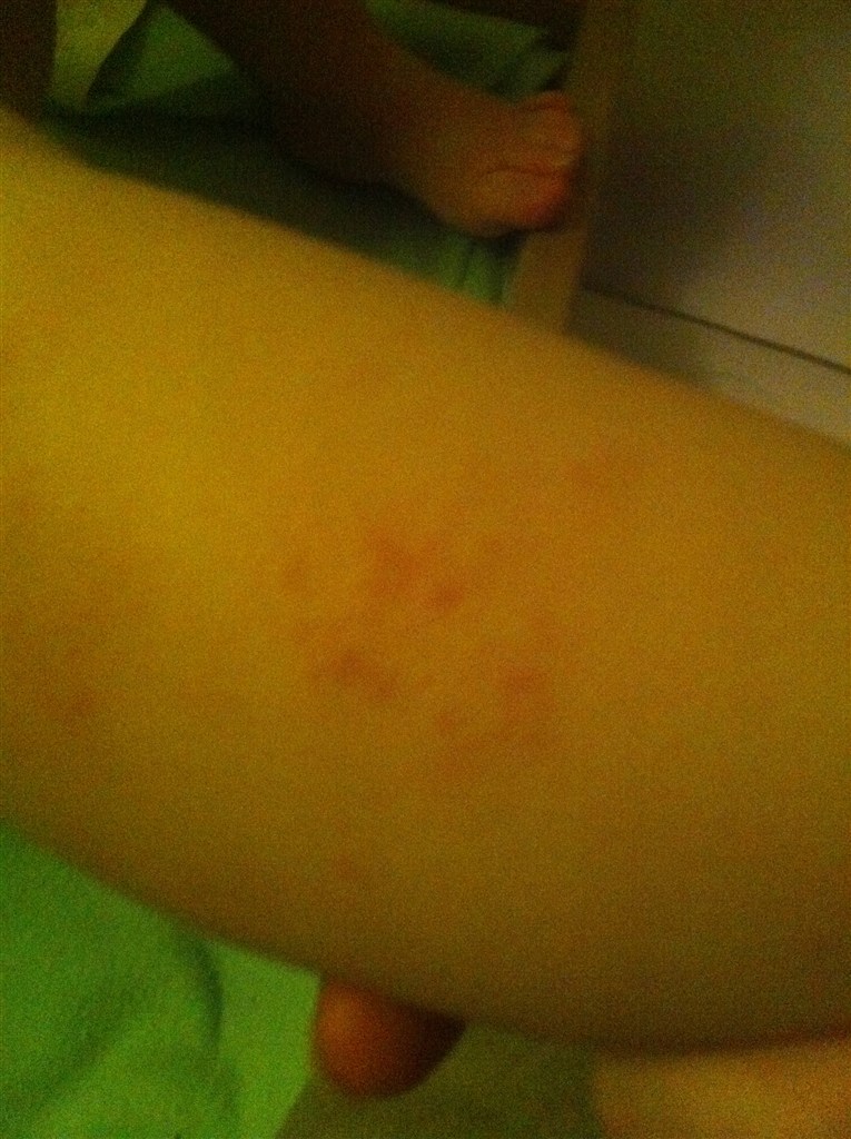 Da jeg skulle skifte bassen her til aften kan jeg mærke at han er lidt ru på sit underben, og jeg tjekker så, og på billederne kan i se hvad der møder mine øjne..