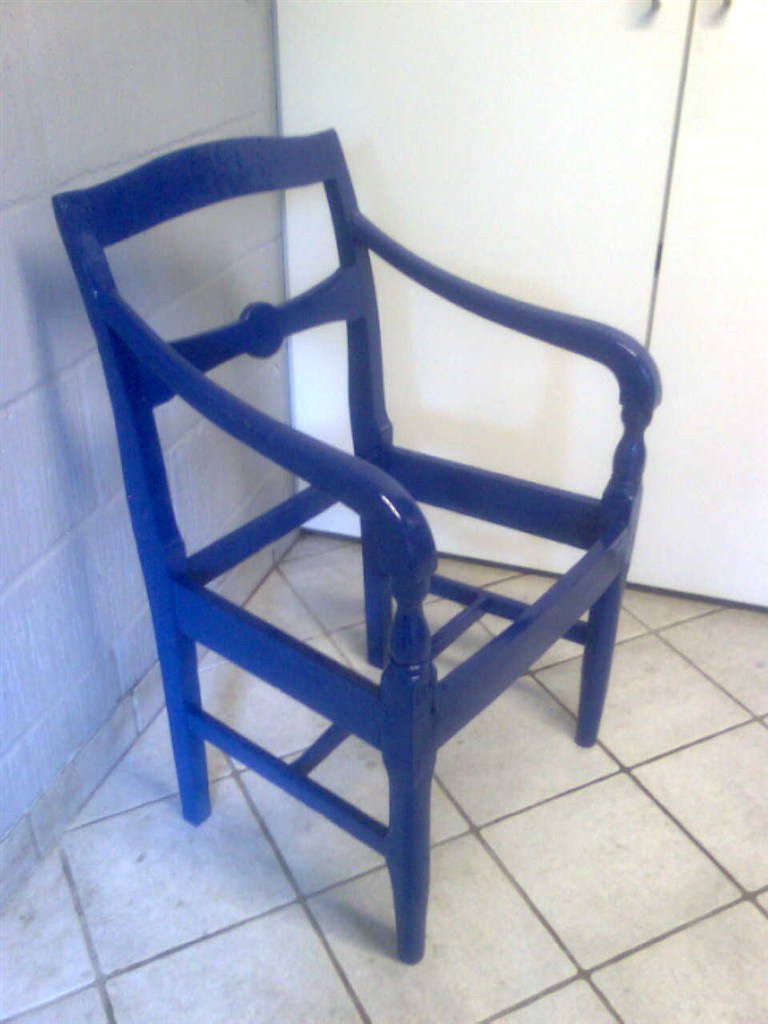 Har også fået malet en ældre mindre stol blå, til min søns værelse, den mangler dog lige sædet..