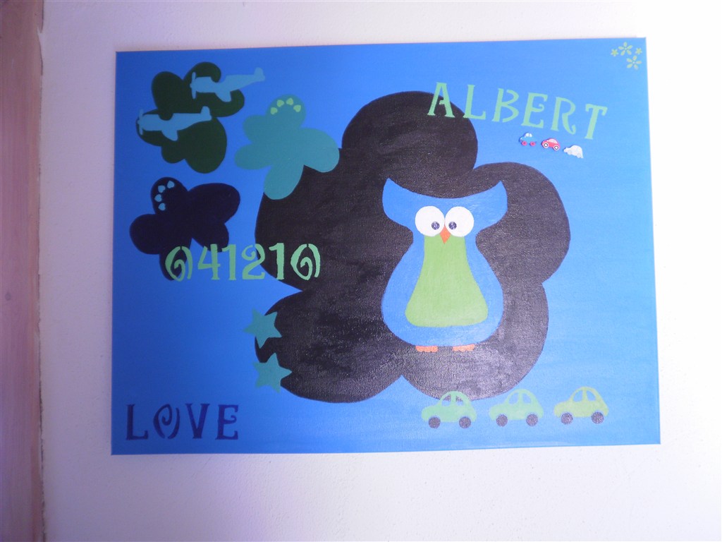 Sidst men ikke mindst har jeg lavet et maleri til min søns værelse, er dog ikke helt tilfreds med den endnu, der mangler ligesom et eller andet sys jeg..