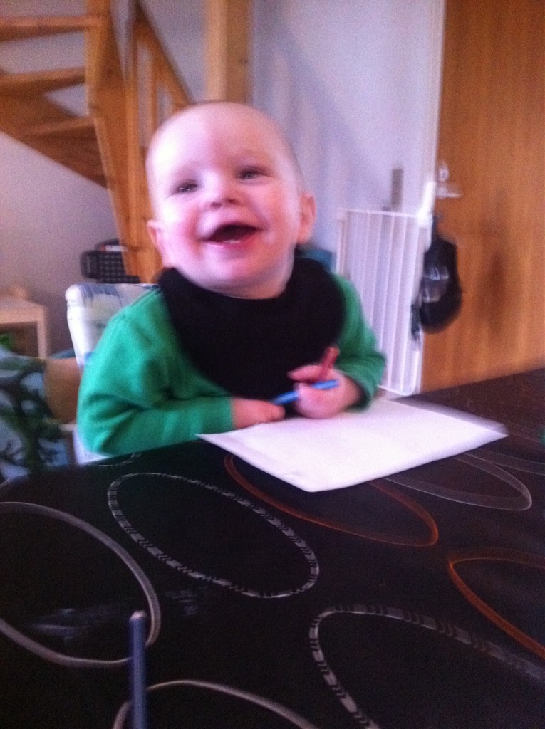 Dygtig dreng der allerede kan gå ! Min Karla er fra 26. feb, så de er tæt på hinanden, men hun går ikke selv endnu - selvom hun godt kan